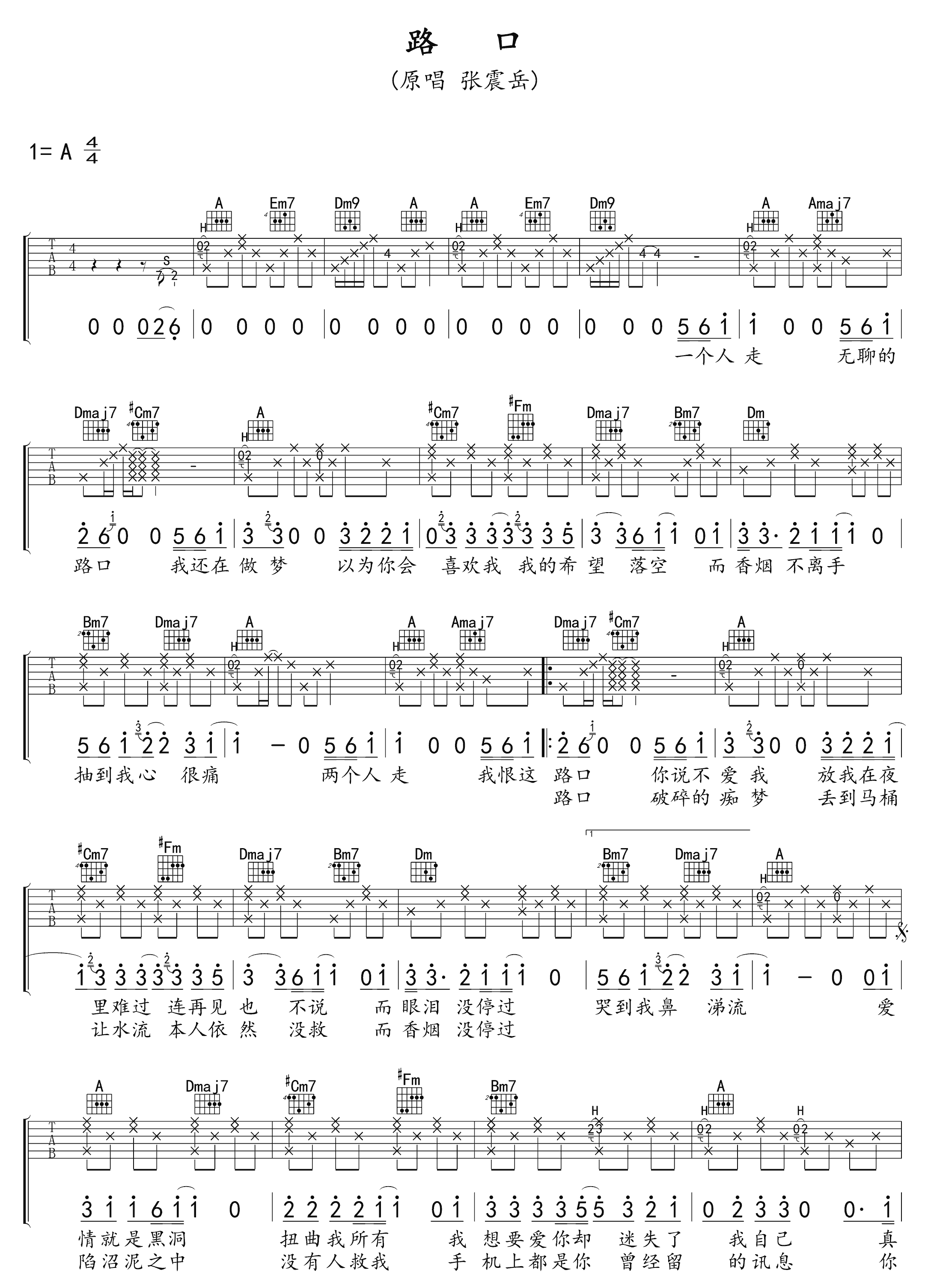 吉他谱 | 热门弹唱《路口》