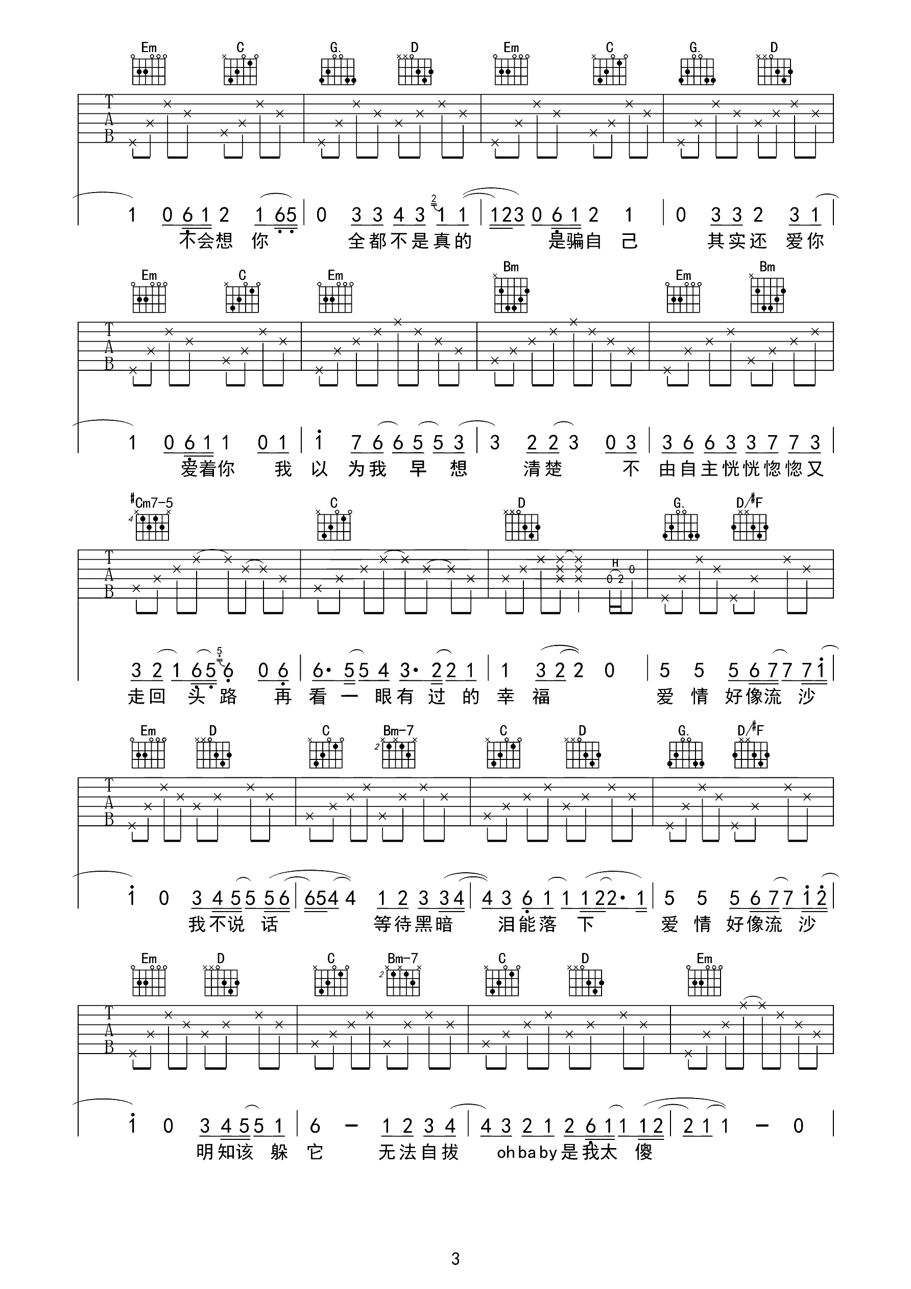吉他谱 | 热门弹唱《流沙》