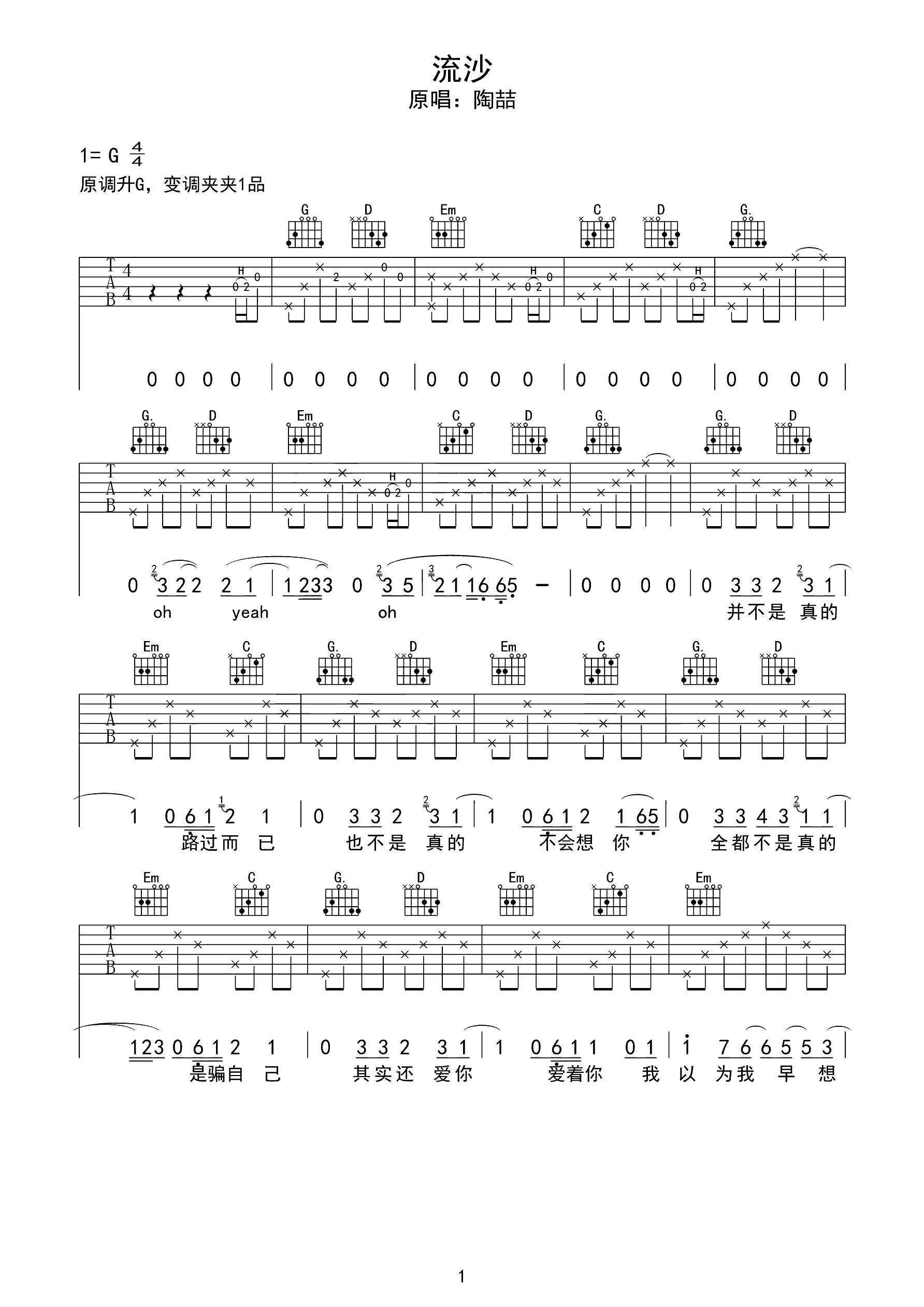 咬春吉他谱_G调版