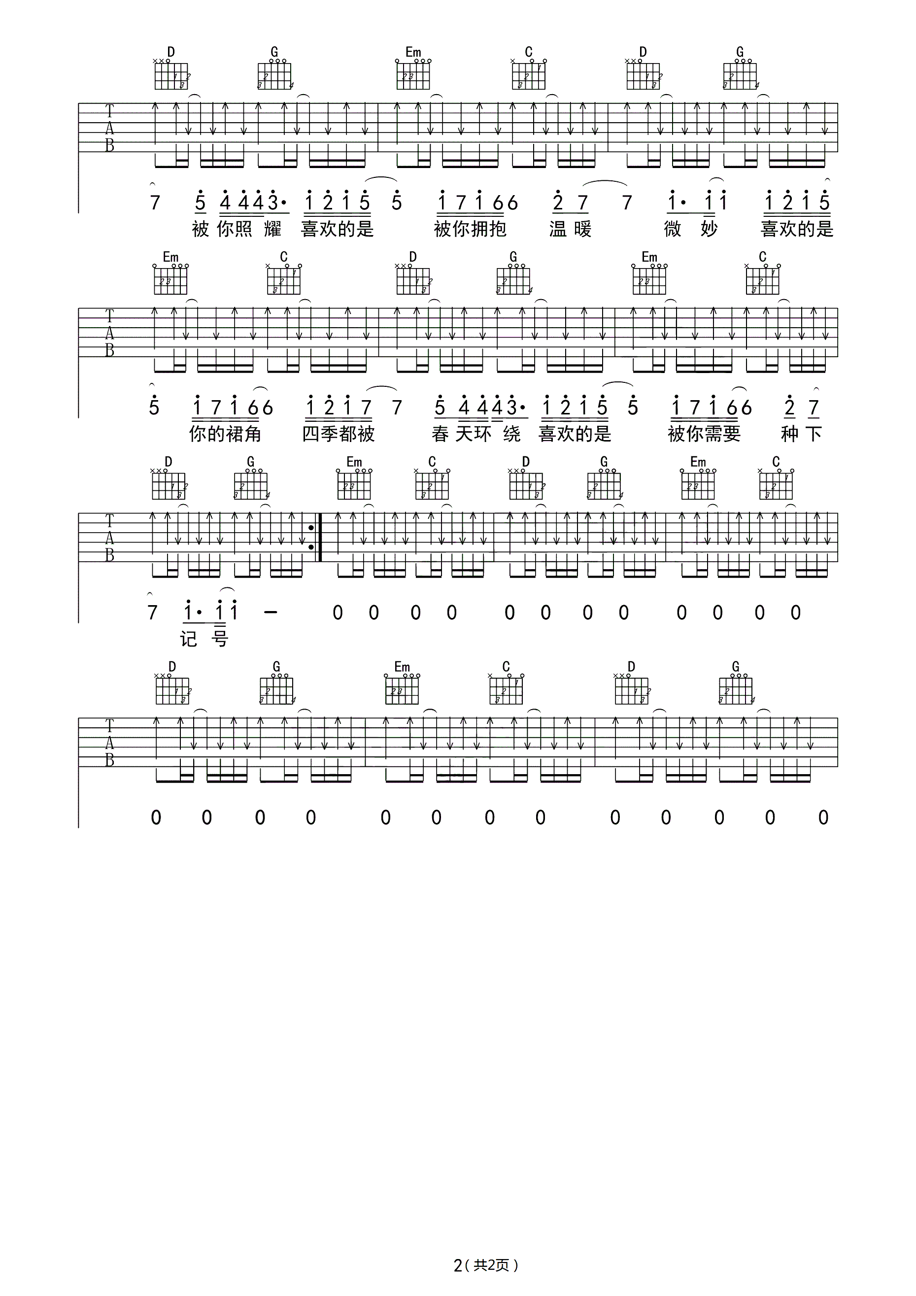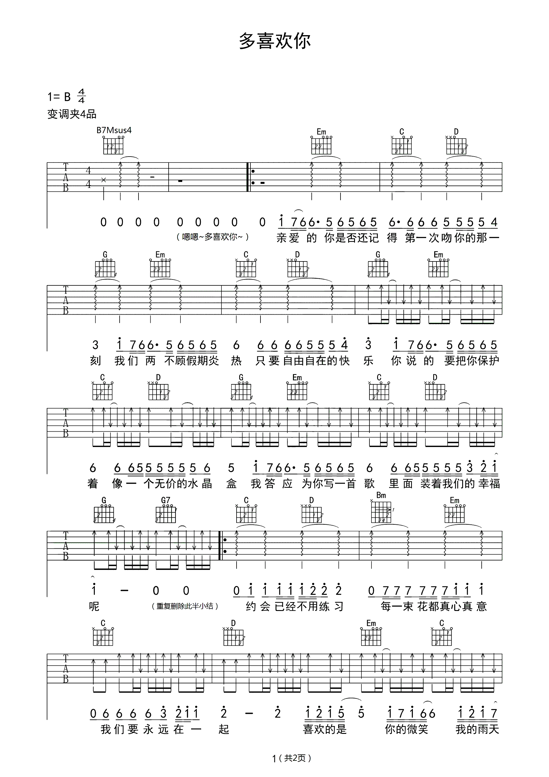吉他谱 | 热门弹唱《多喜欢你》