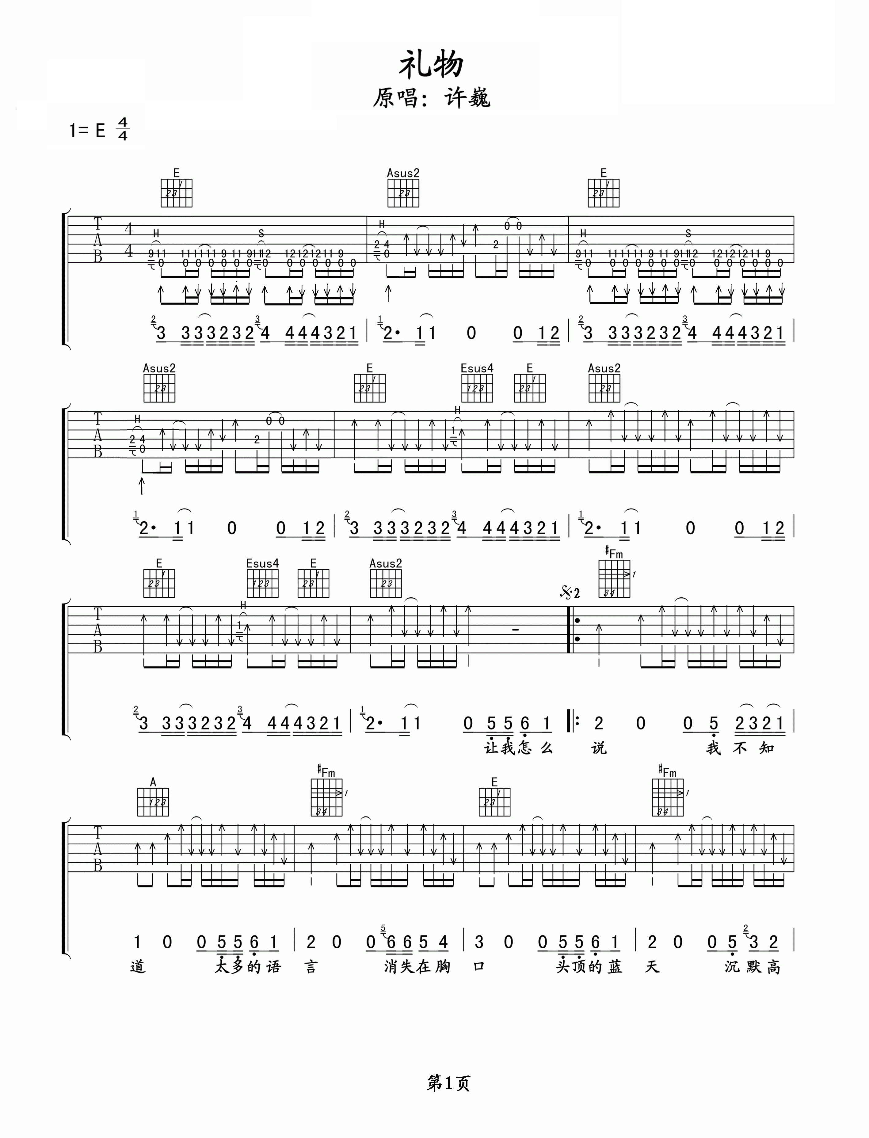 吉他谱 | 热门弹唱《礼物》