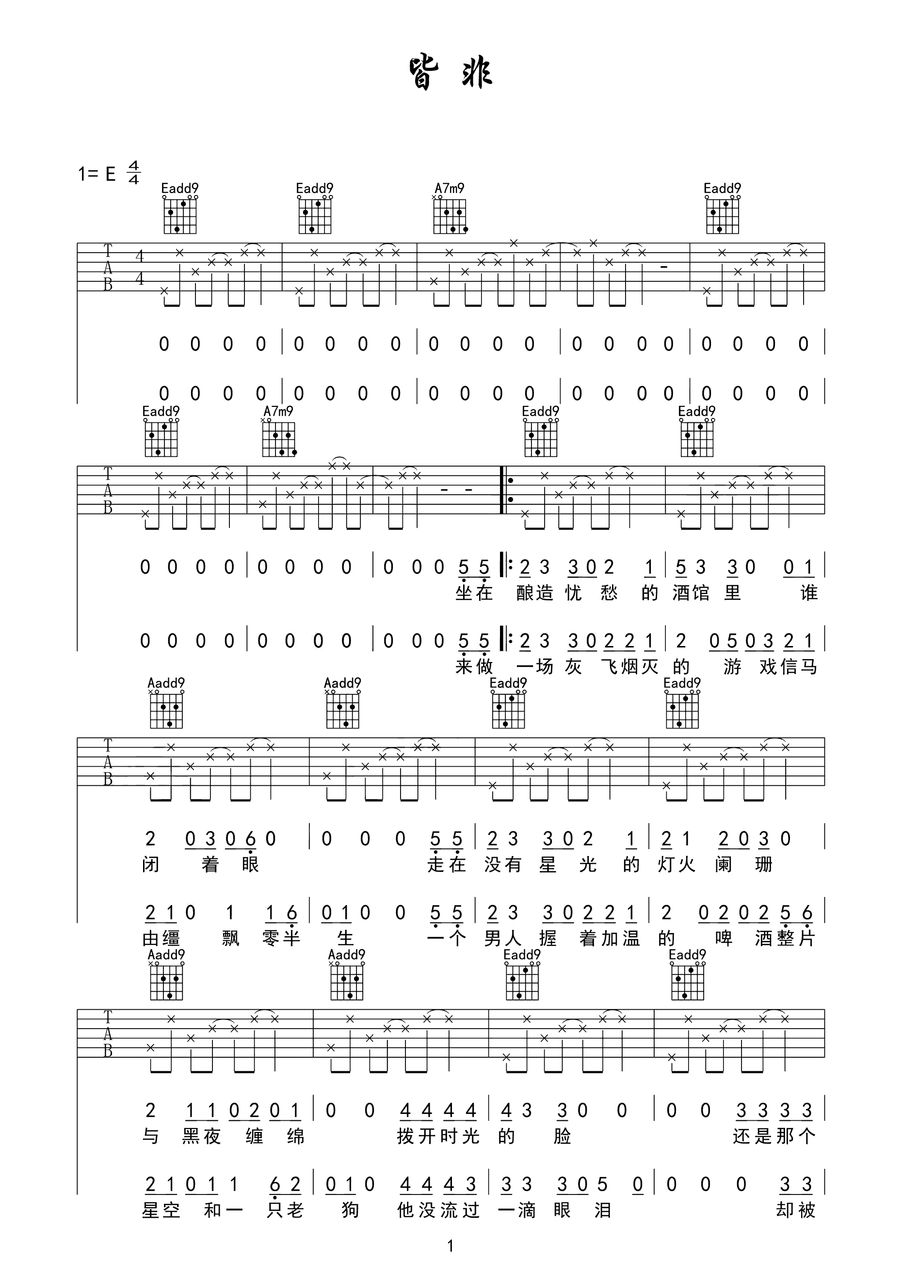 吉他谱 | 热门弹唱《皆非》