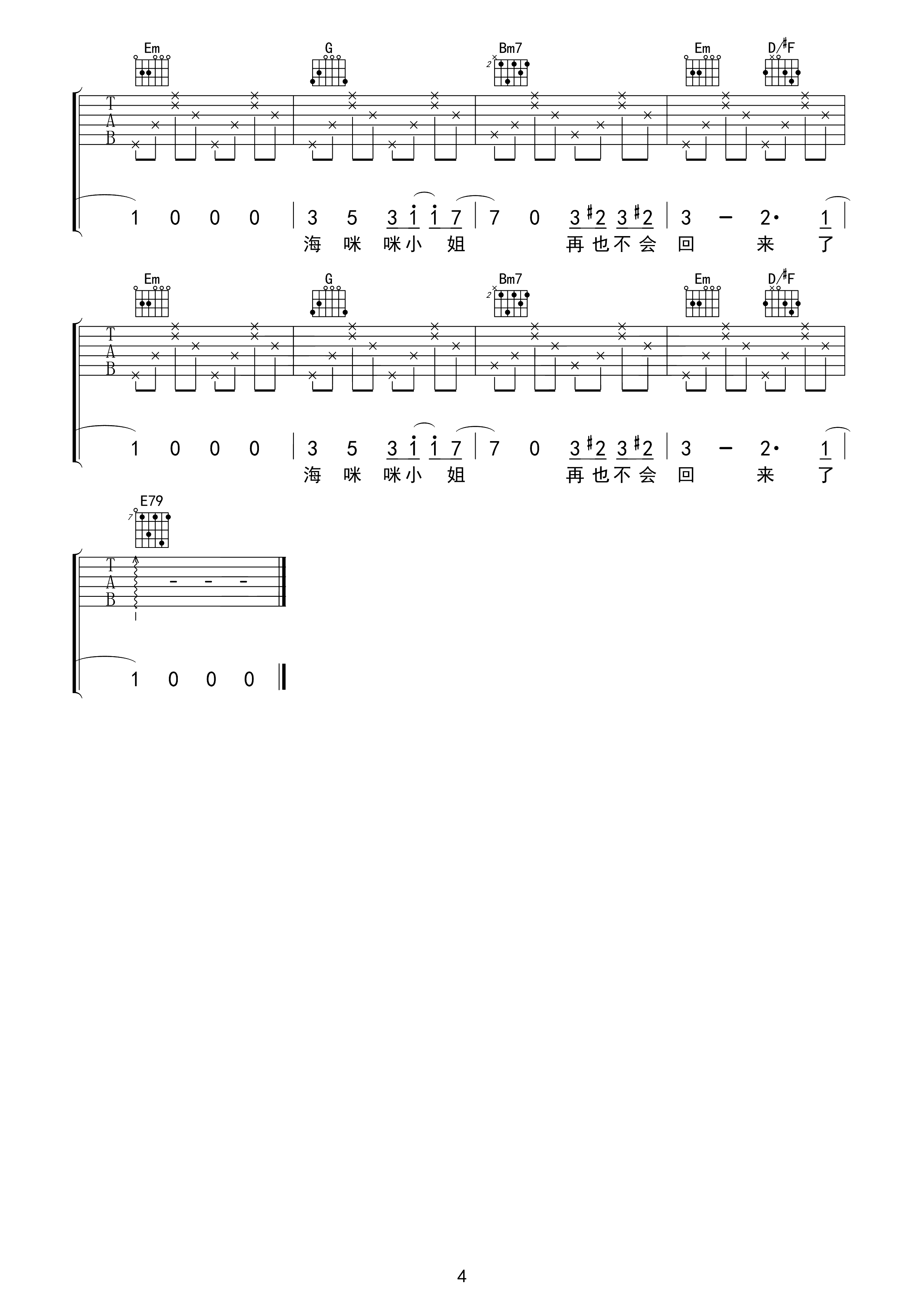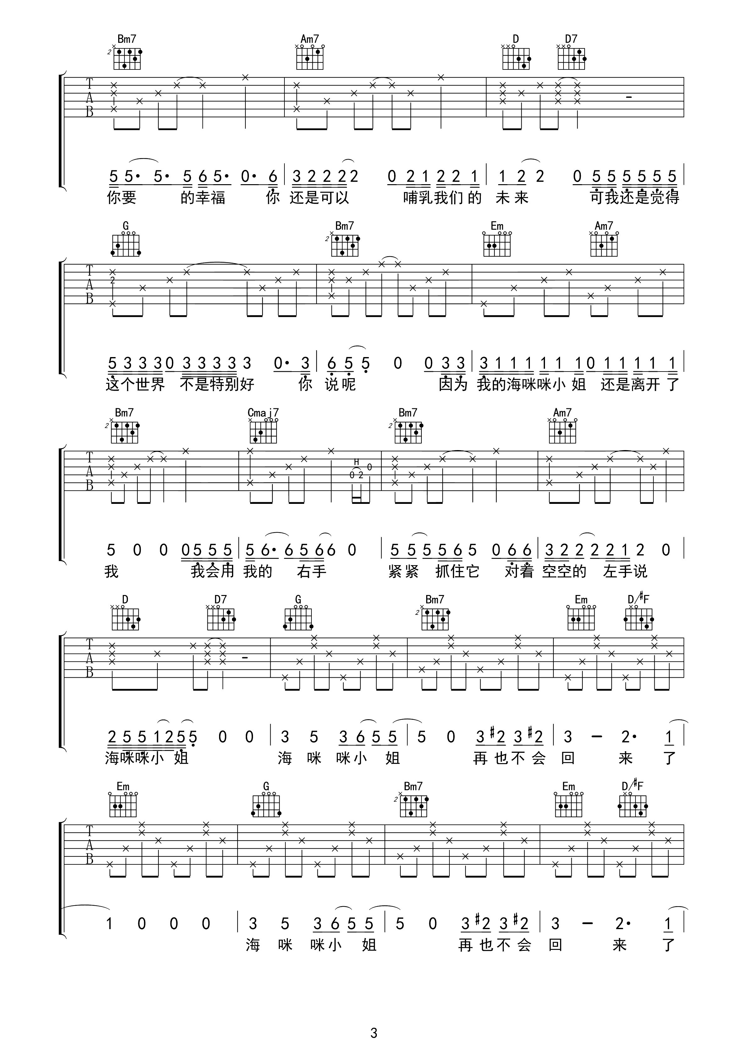 吉他谱 | 热门弹唱《海咪咪小姐》