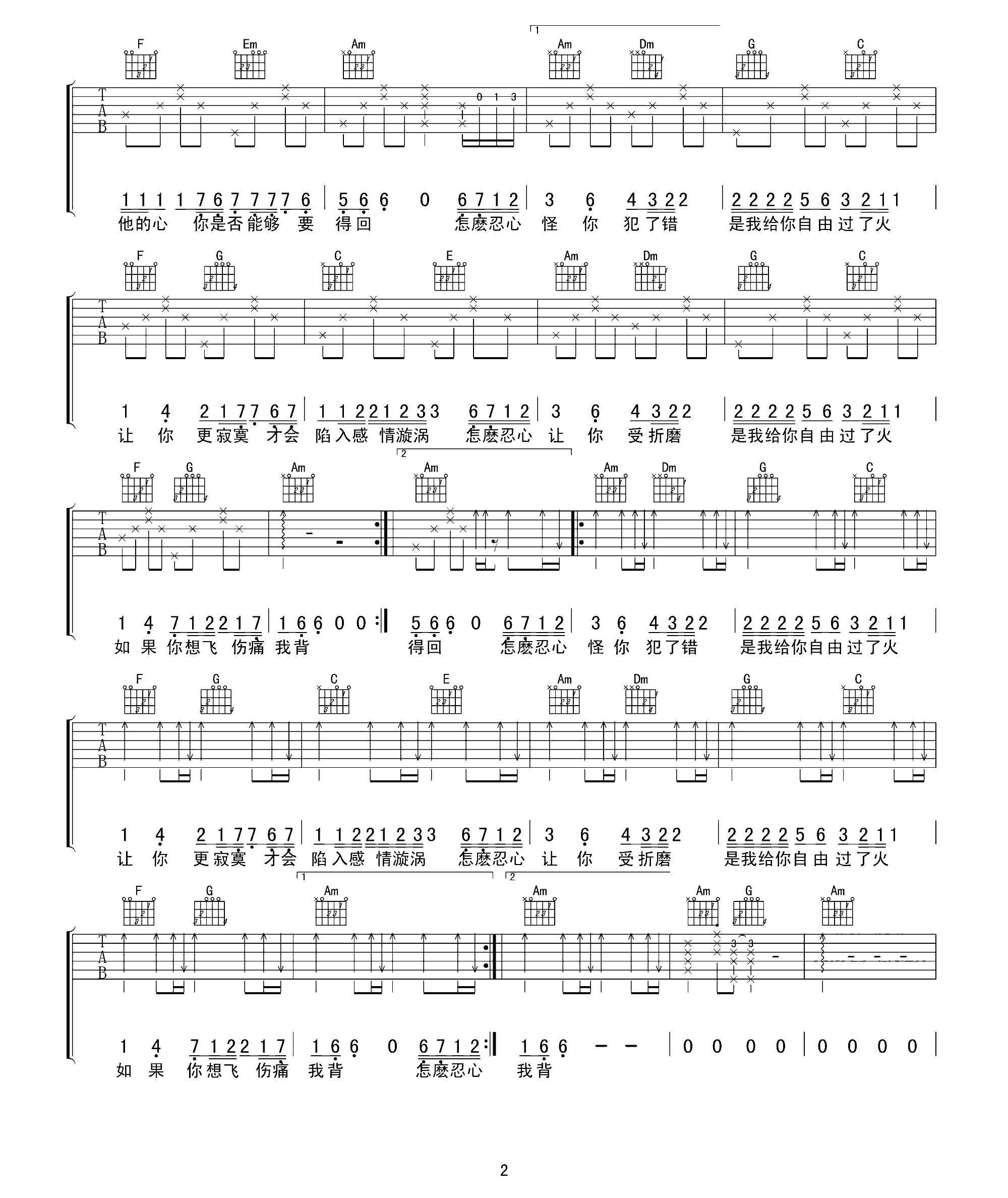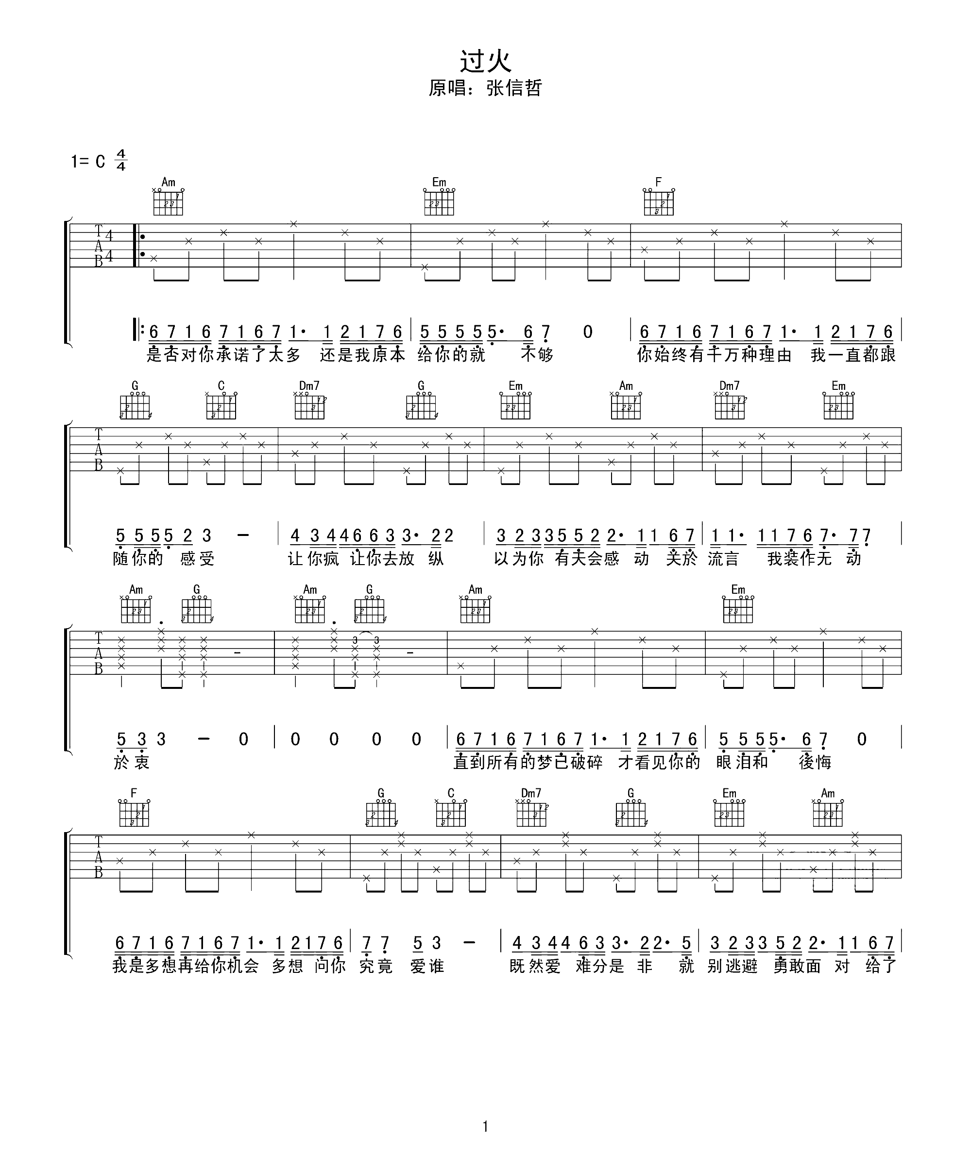 吉他谱 | 热门弹唱《过火》