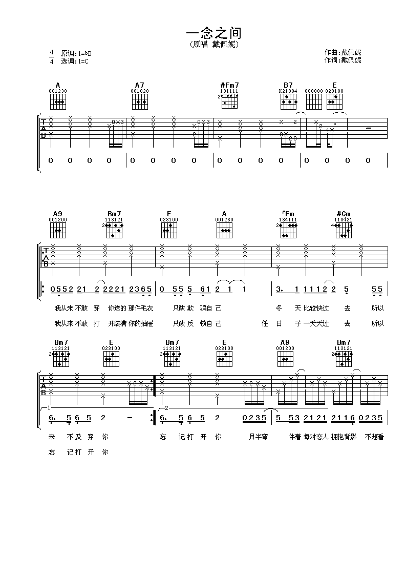 心愿便利贴吉他谱 元若蓝 C调弹唱谱 《