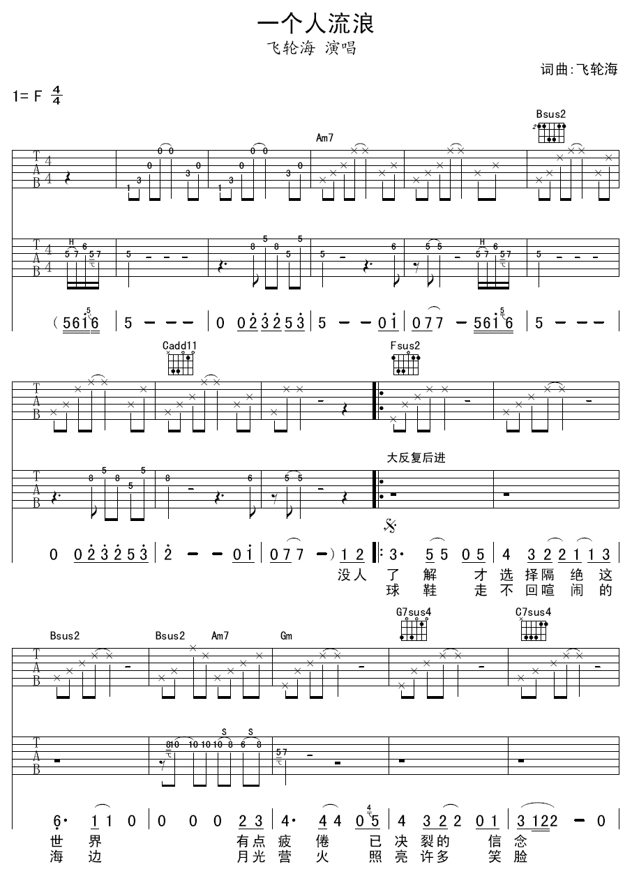 吉他谱 | 热门弹唱《一个人流浪》