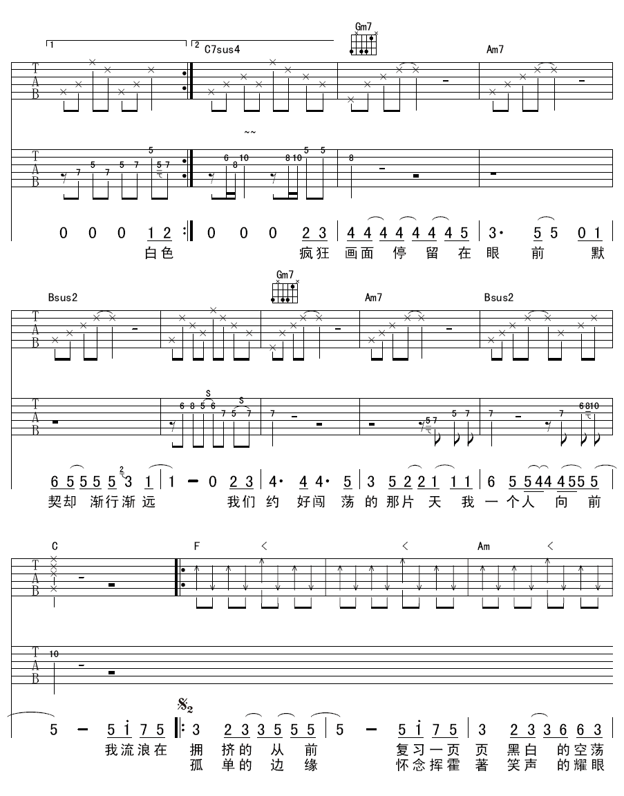 一天一万年(吉他谱)