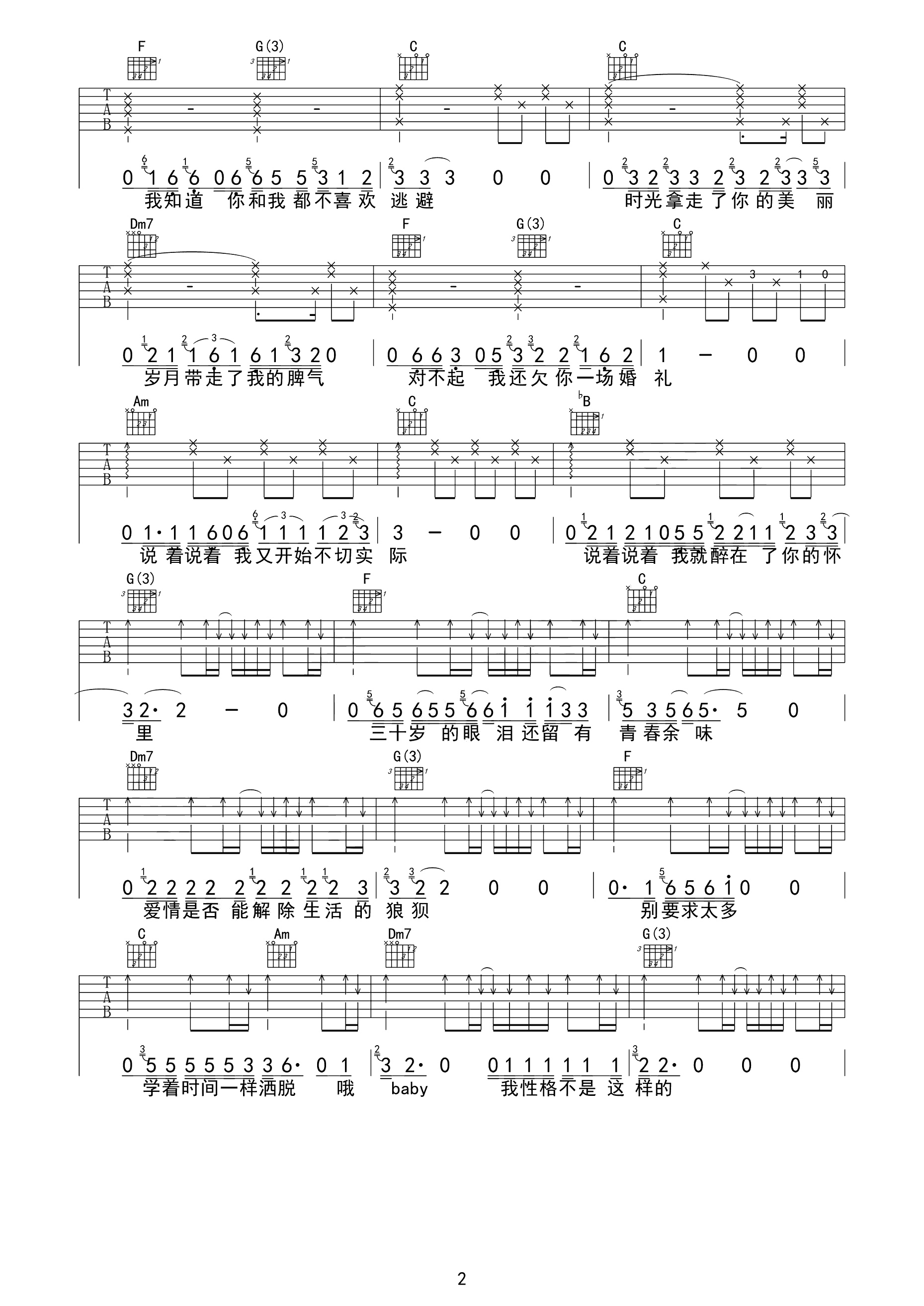 我应该吉他谱
