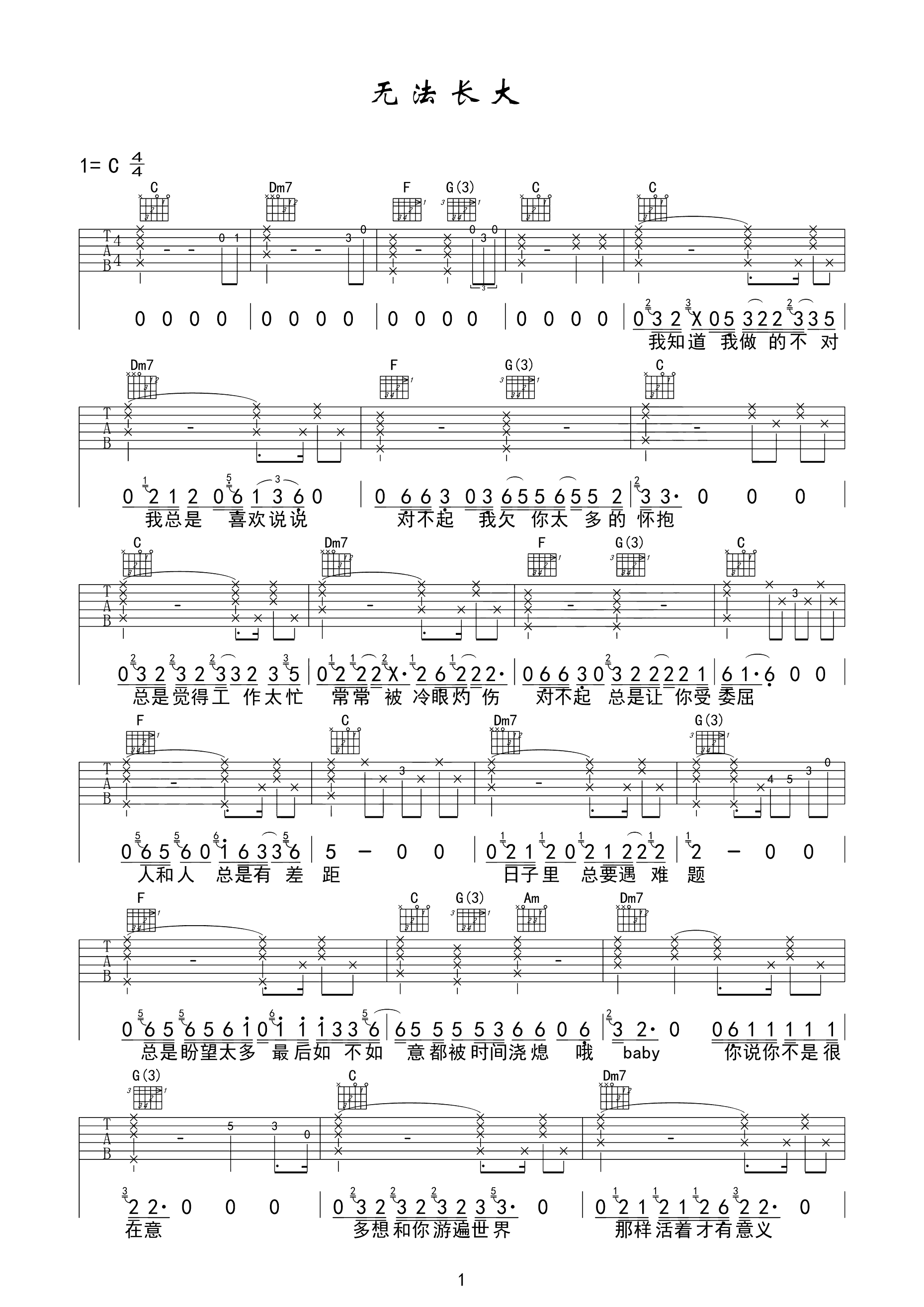 吉他谱 | 热门弹唱《无法长大》