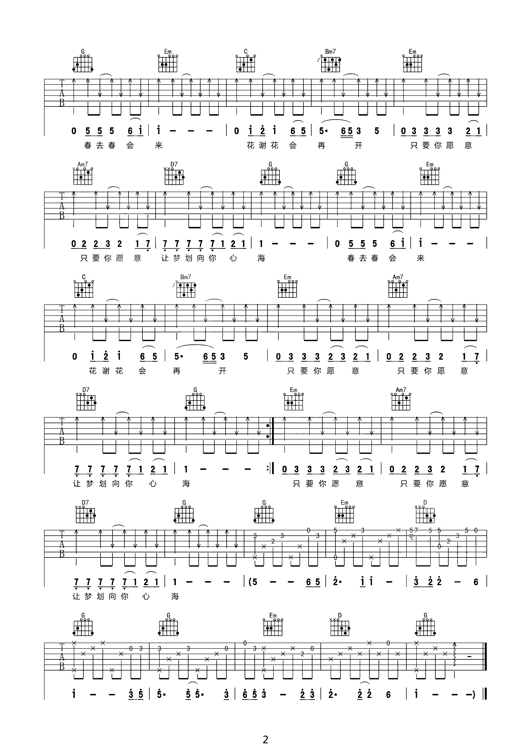 游山恋吉他谱_海伦_C调弹唱谱_图片谱