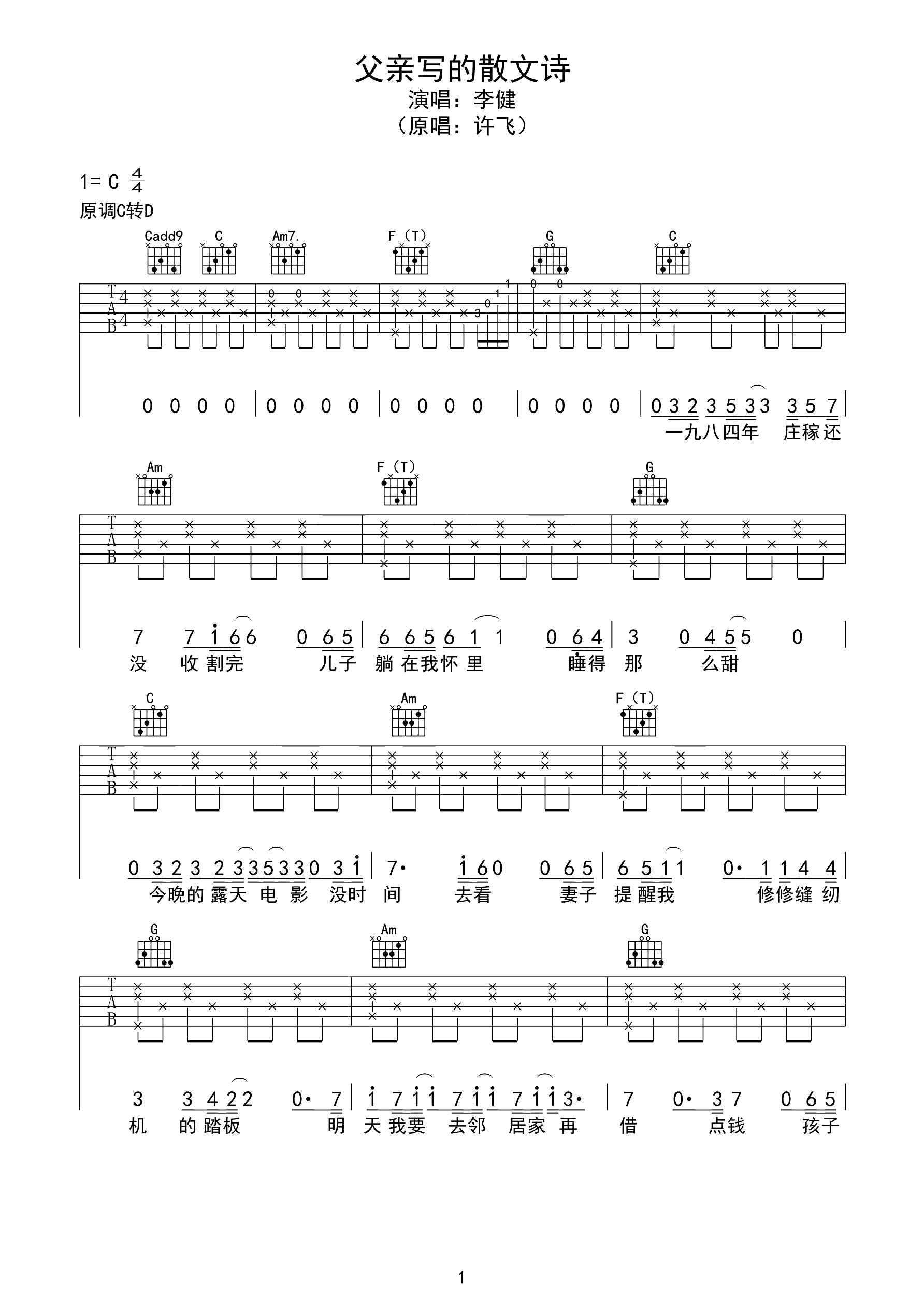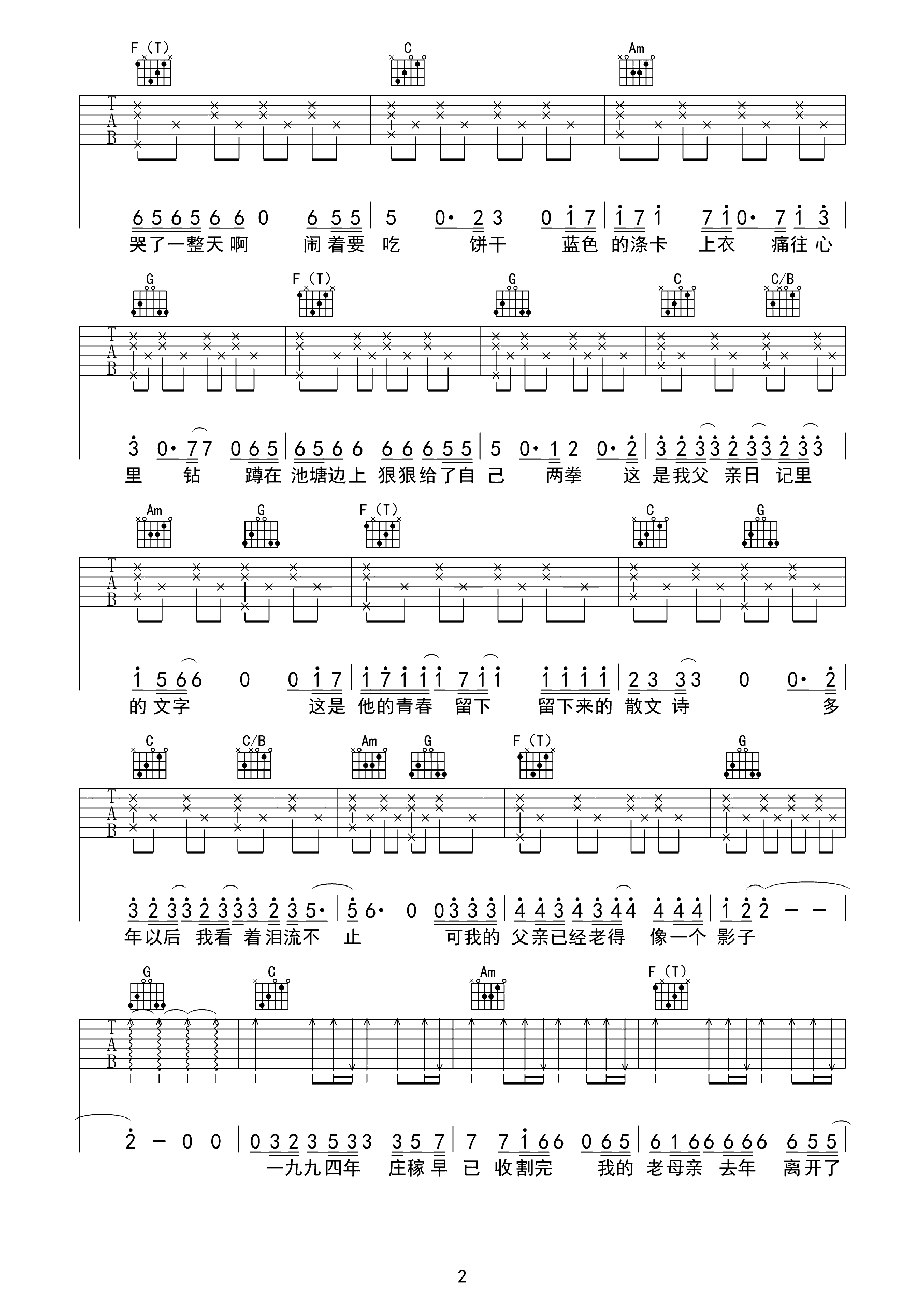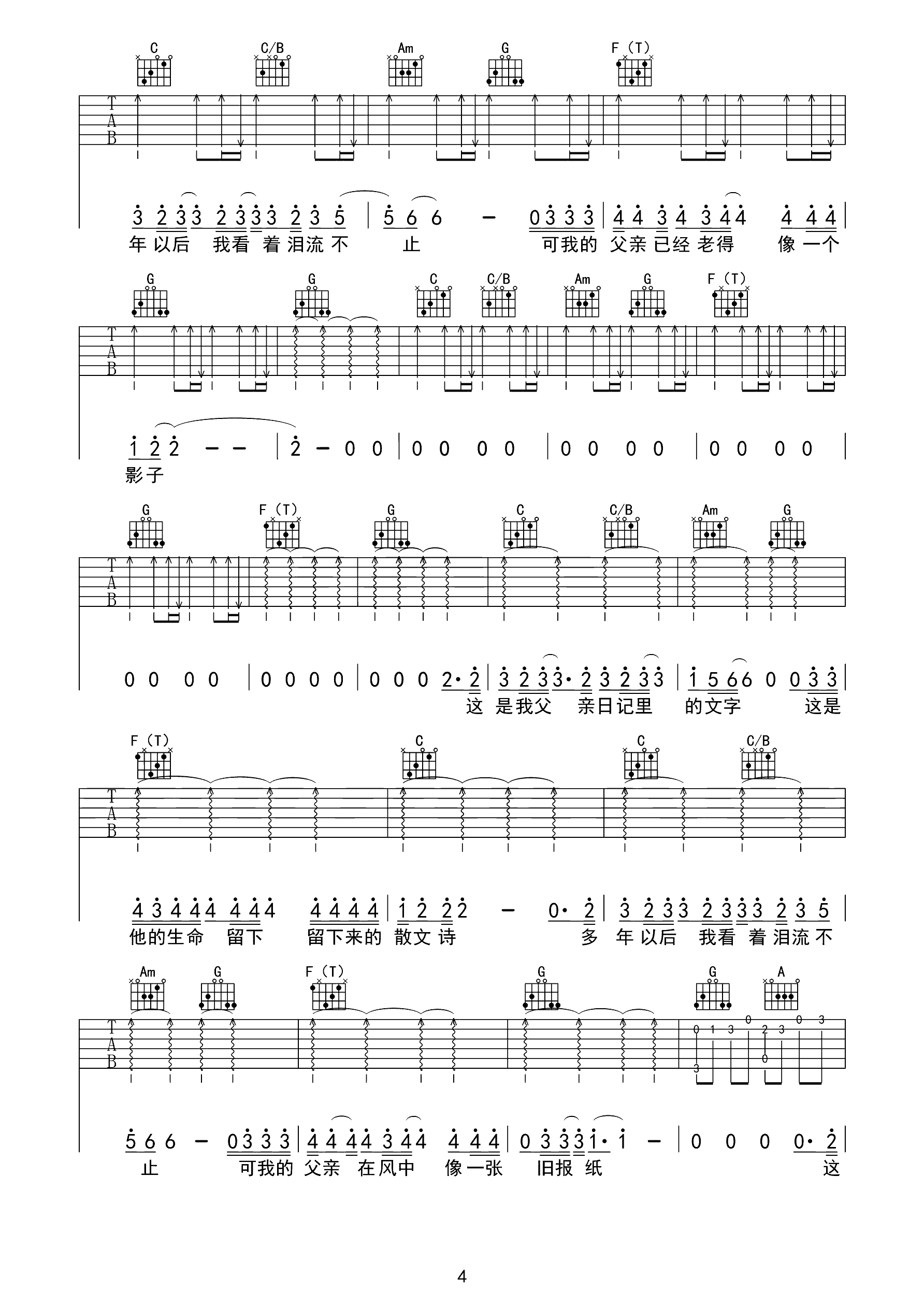 吉他谱 | 热门弹唱《父亲写的散文诗》