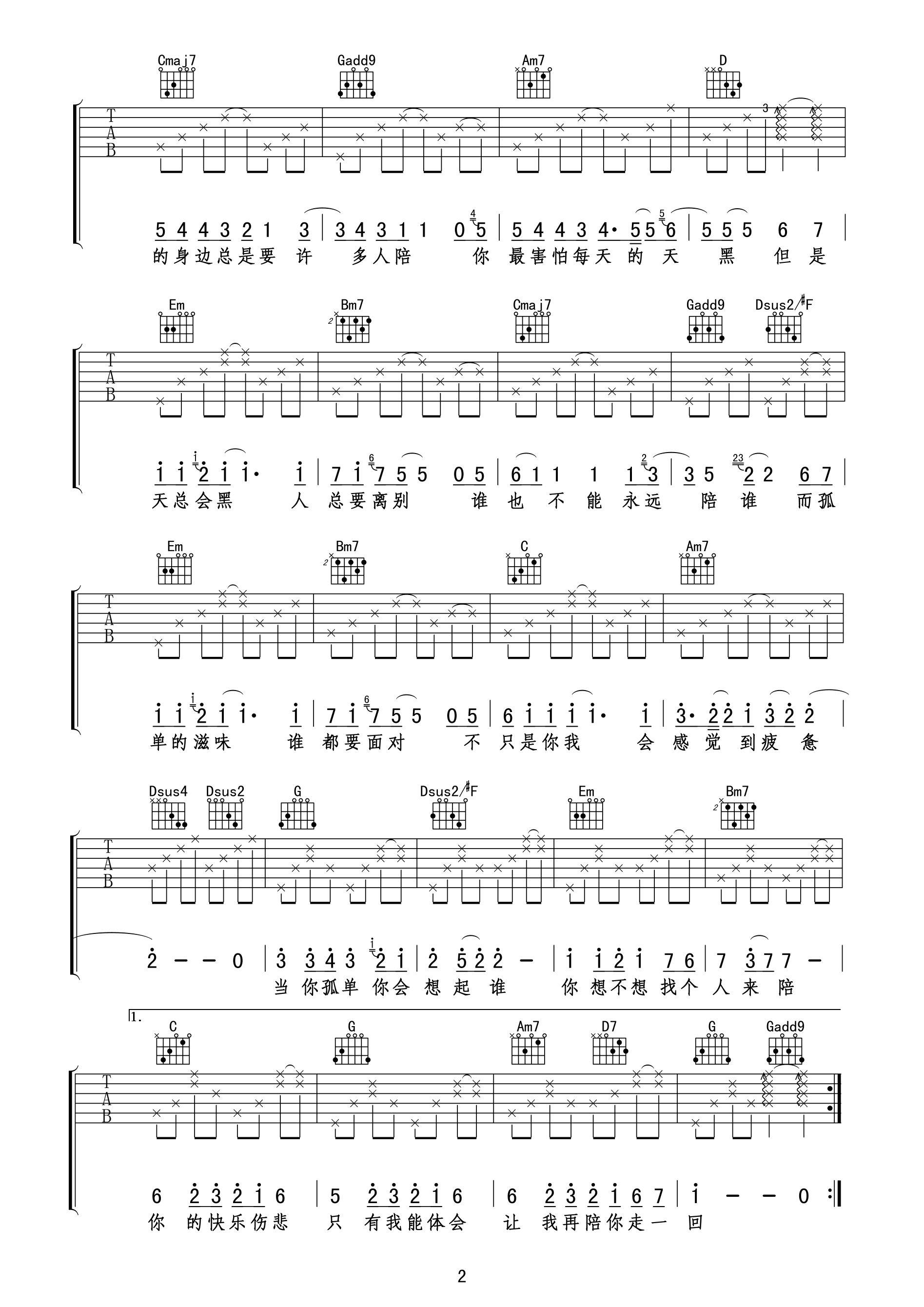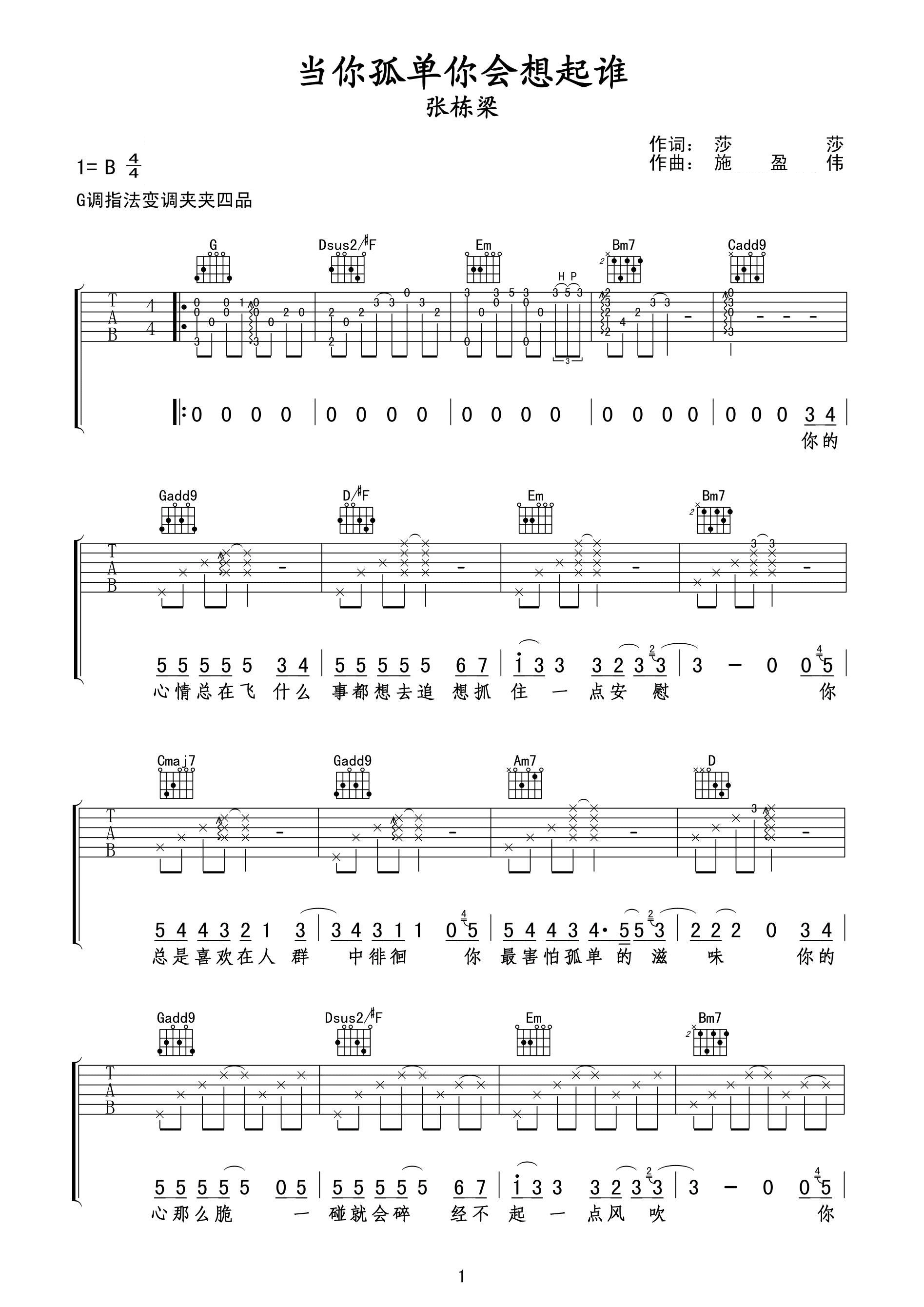 吉他谱 | 热门弹唱《当你孤单你会想起谁》