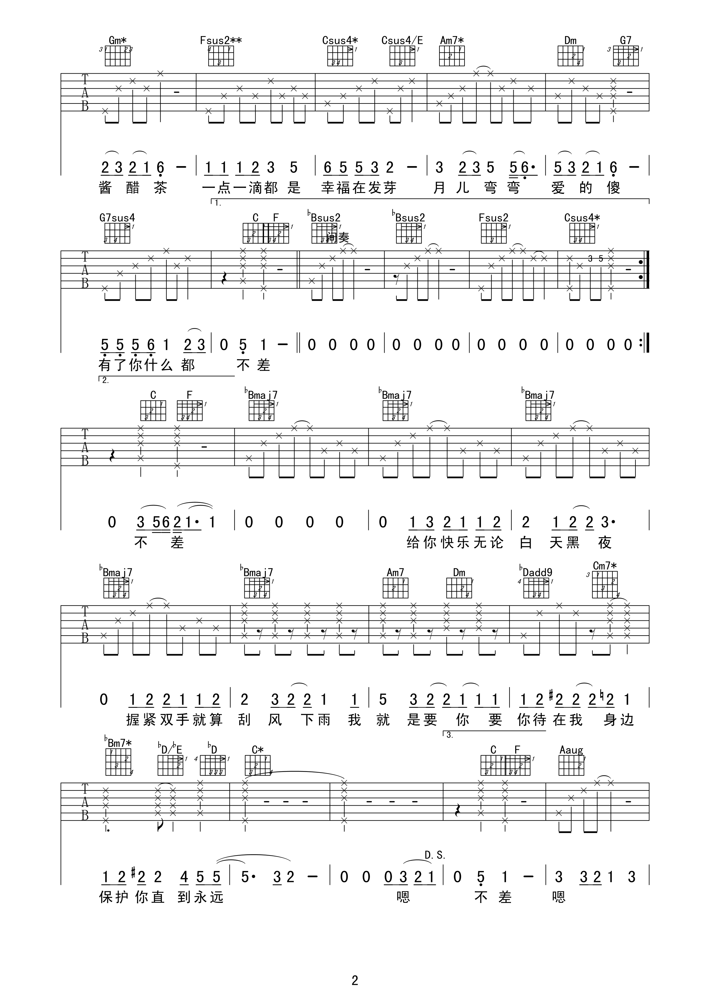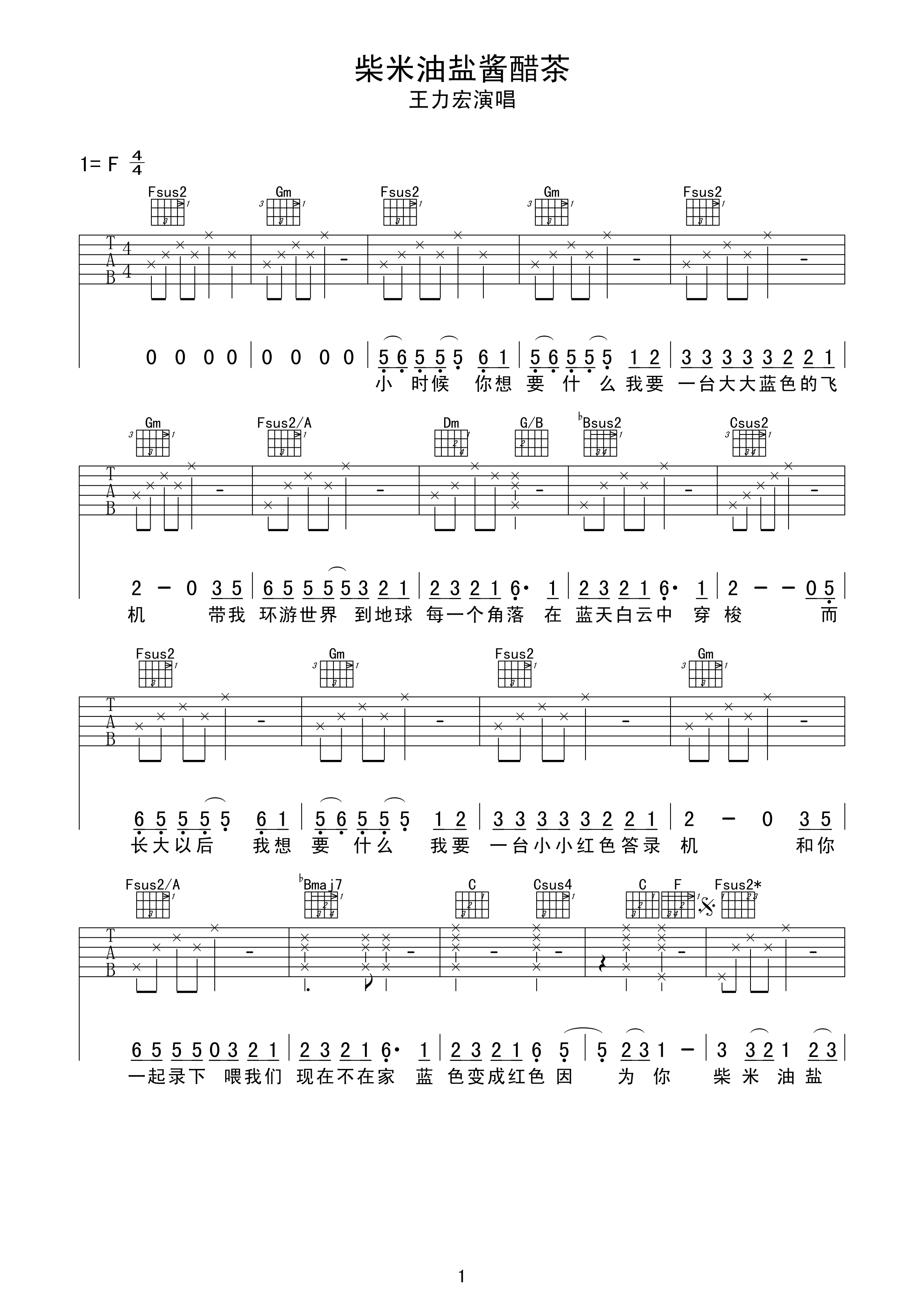 吉他谱 | 热门弹唱《柴米油盐酱醋茶》