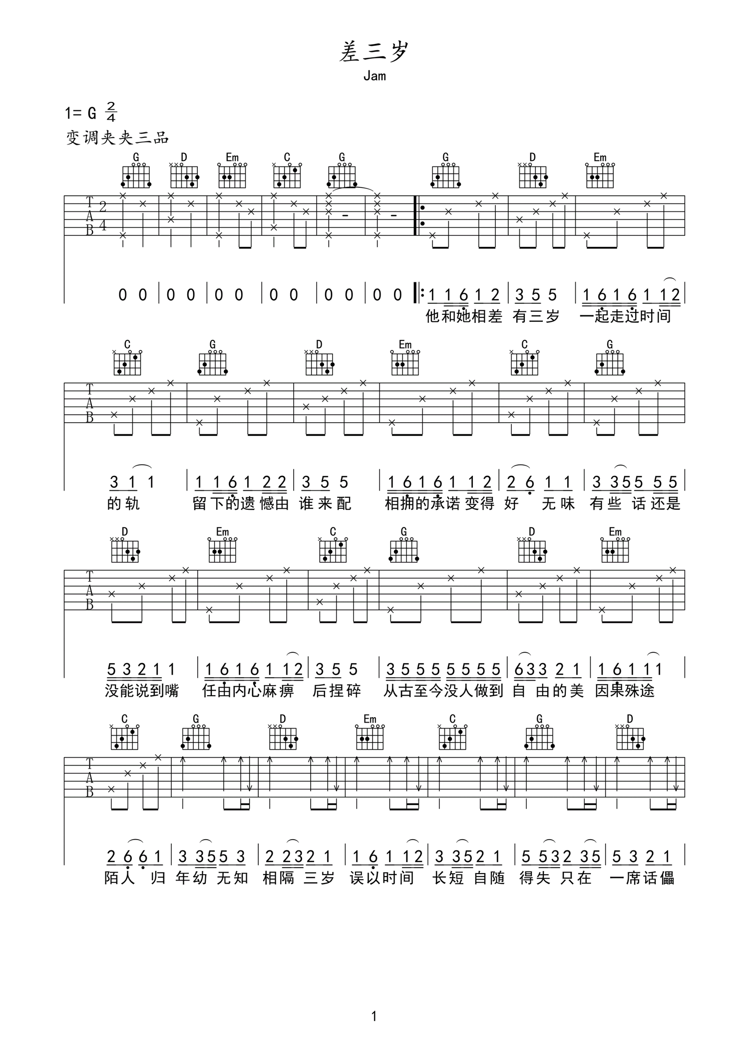 吉他谱 | 入门弹唱《差三岁》