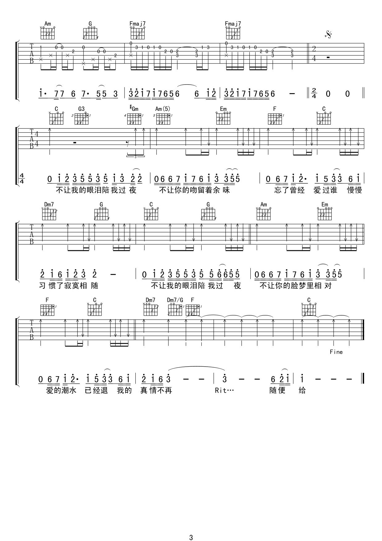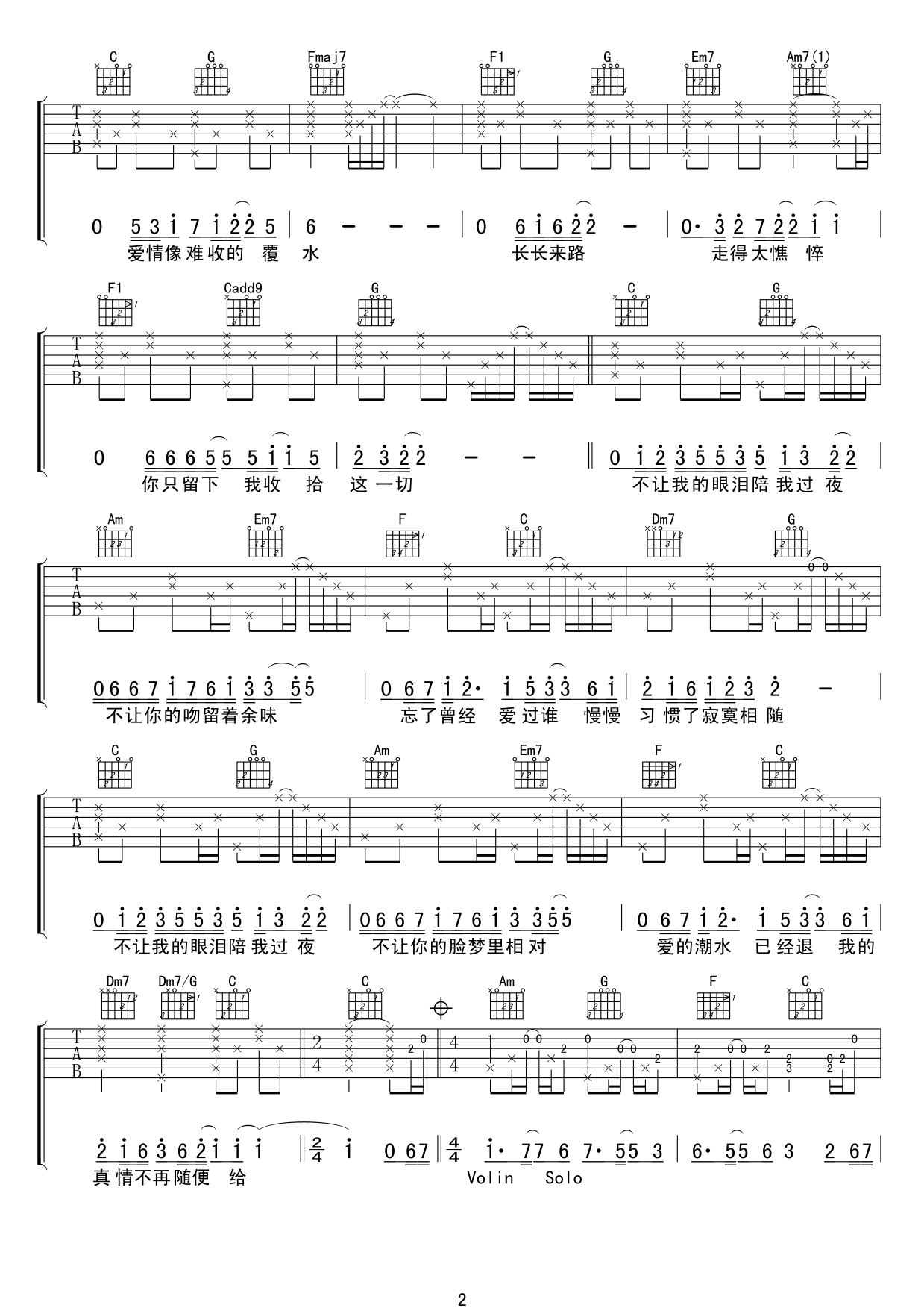 吉他谱 | 热门弹唱《不让我的眼泪陪我过夜》