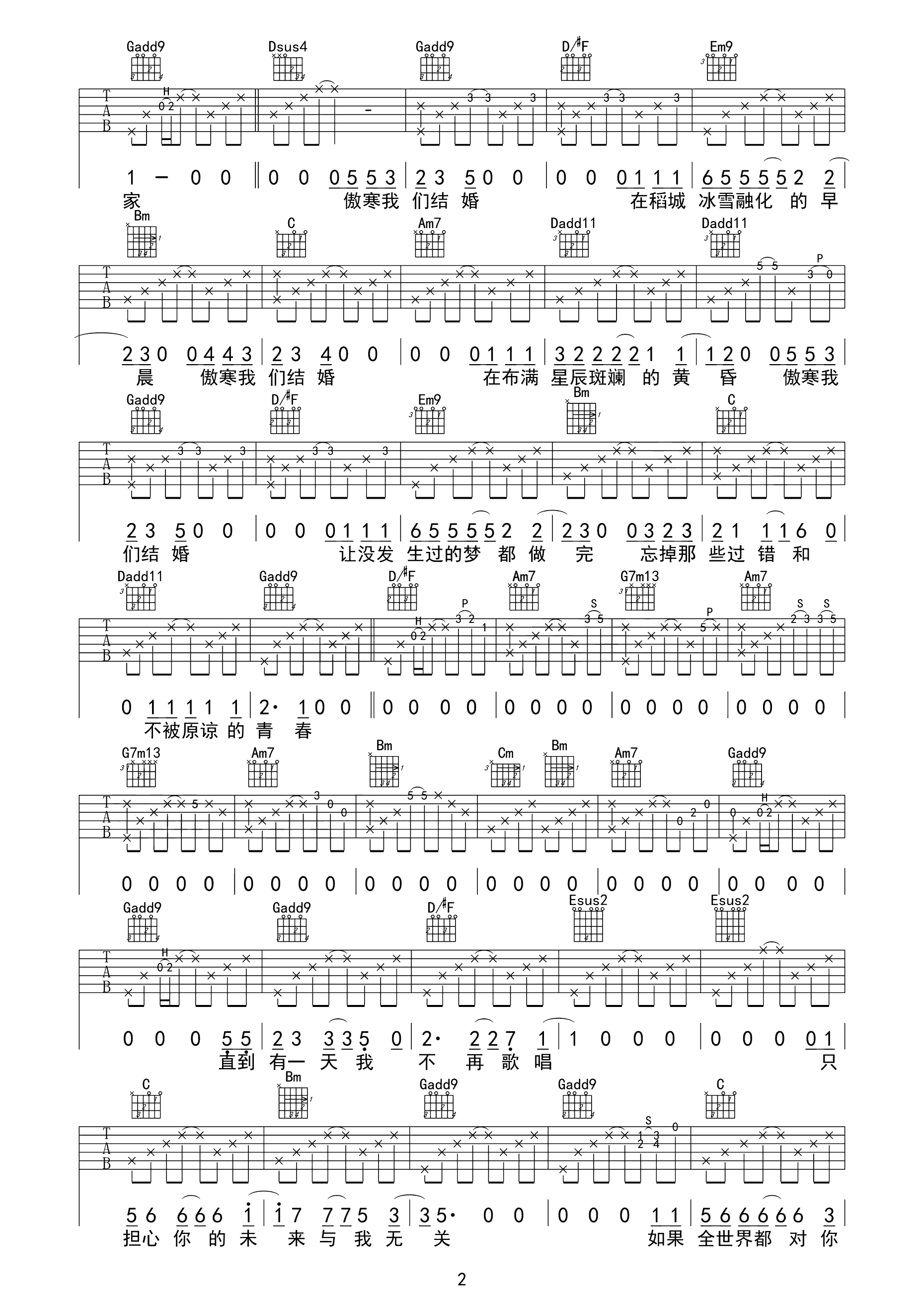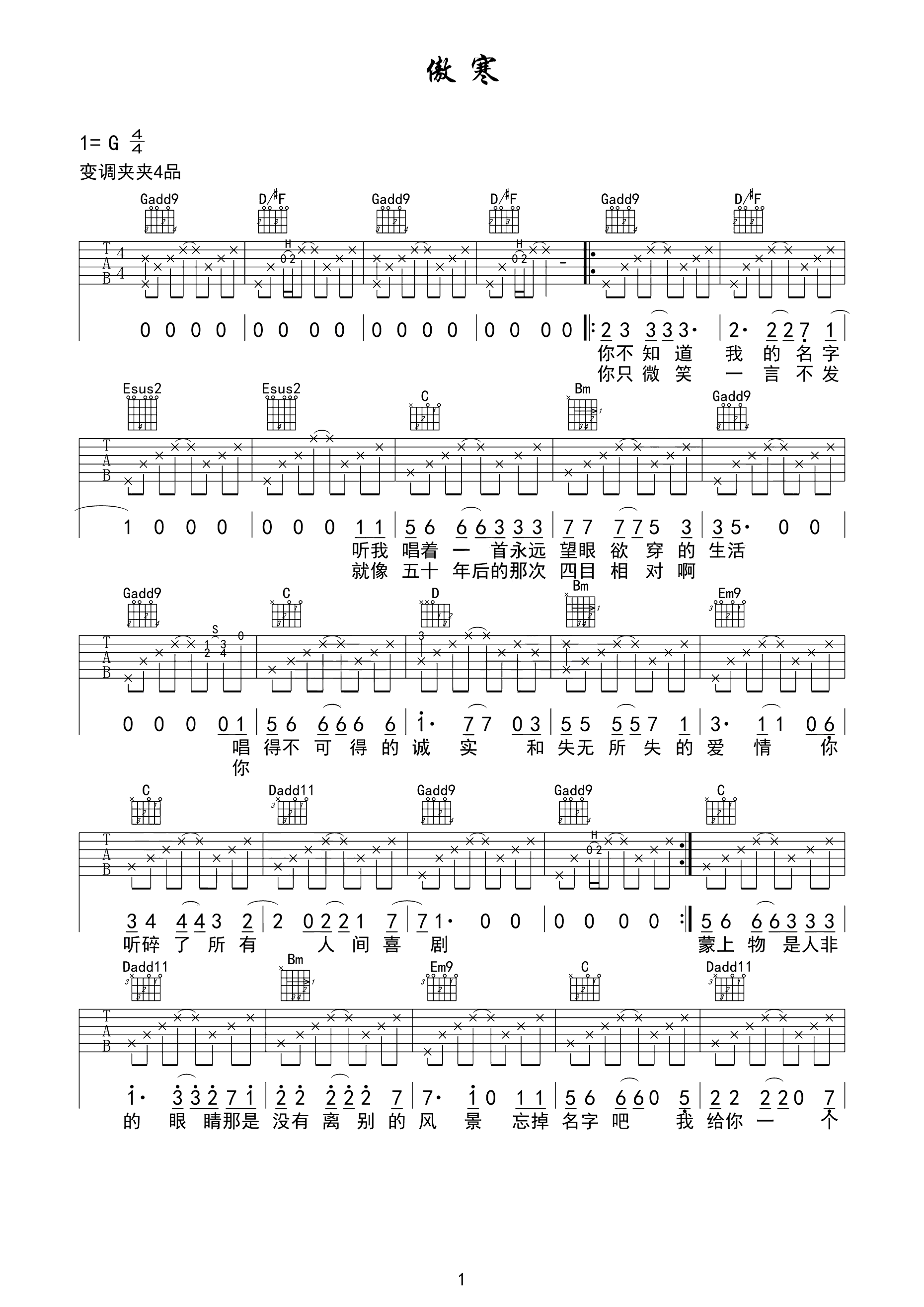 吉他谱 | 热门弹唱《傲寒》