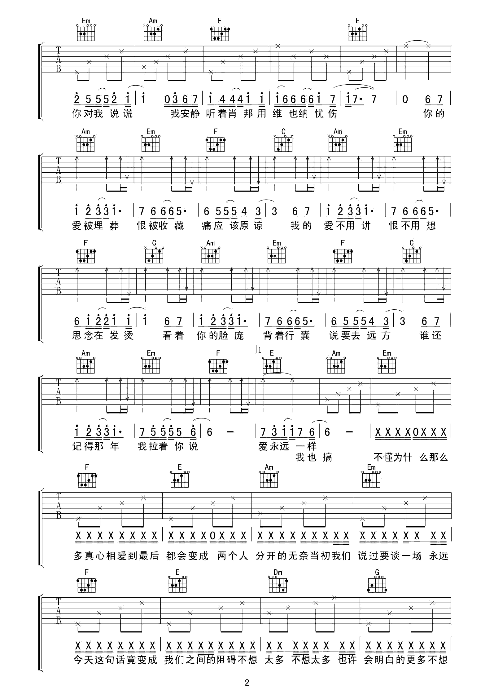 绝口不提爱你吉他谱