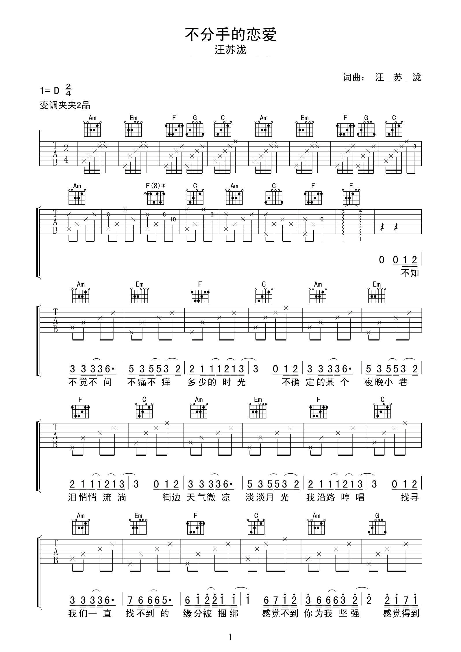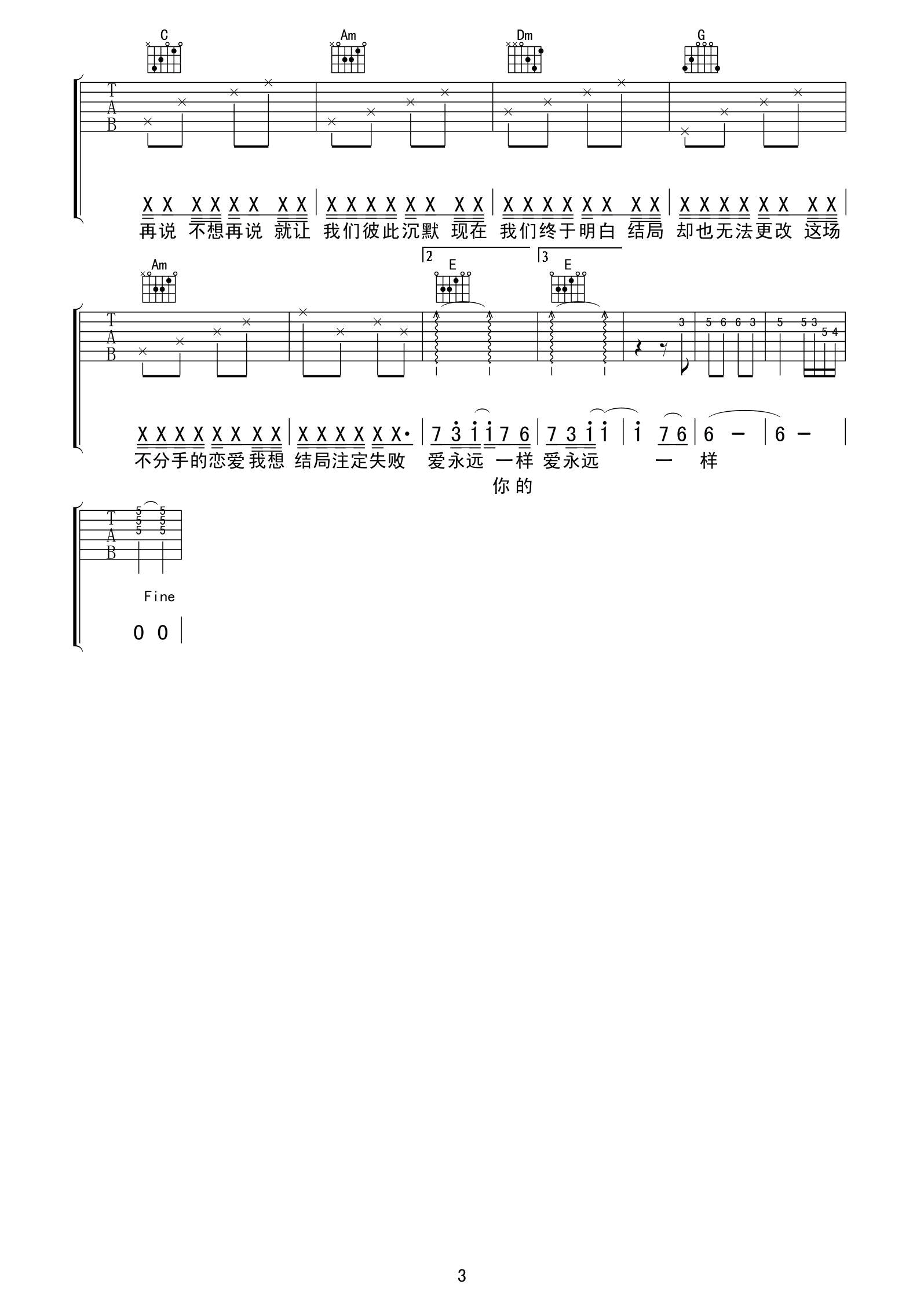 吉他谱 | 热门弹唱《不分手的恋爱》