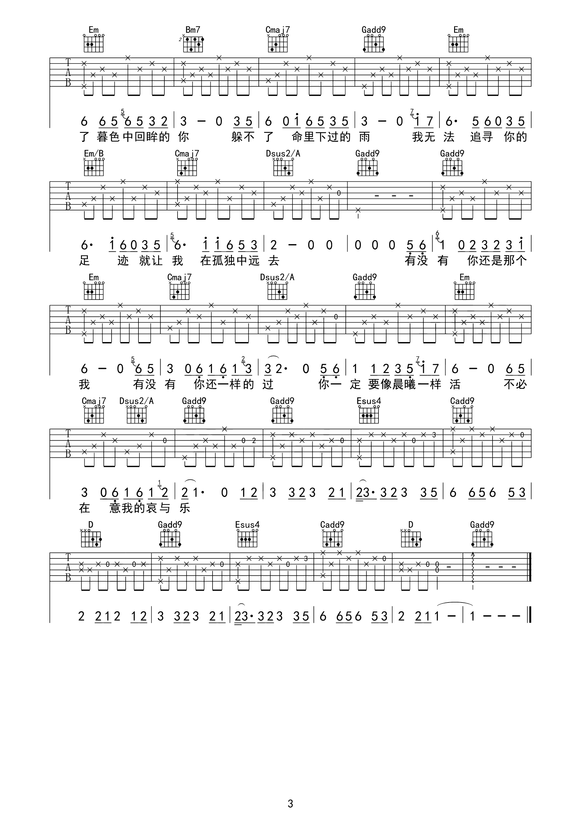 朋友别哭吉他