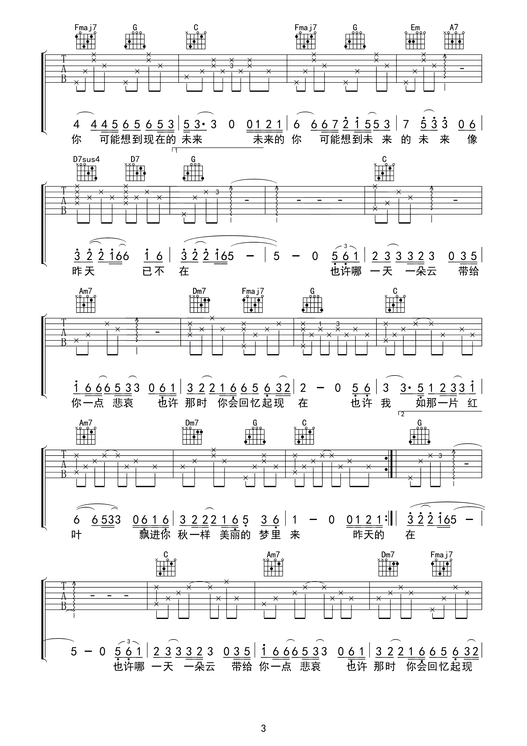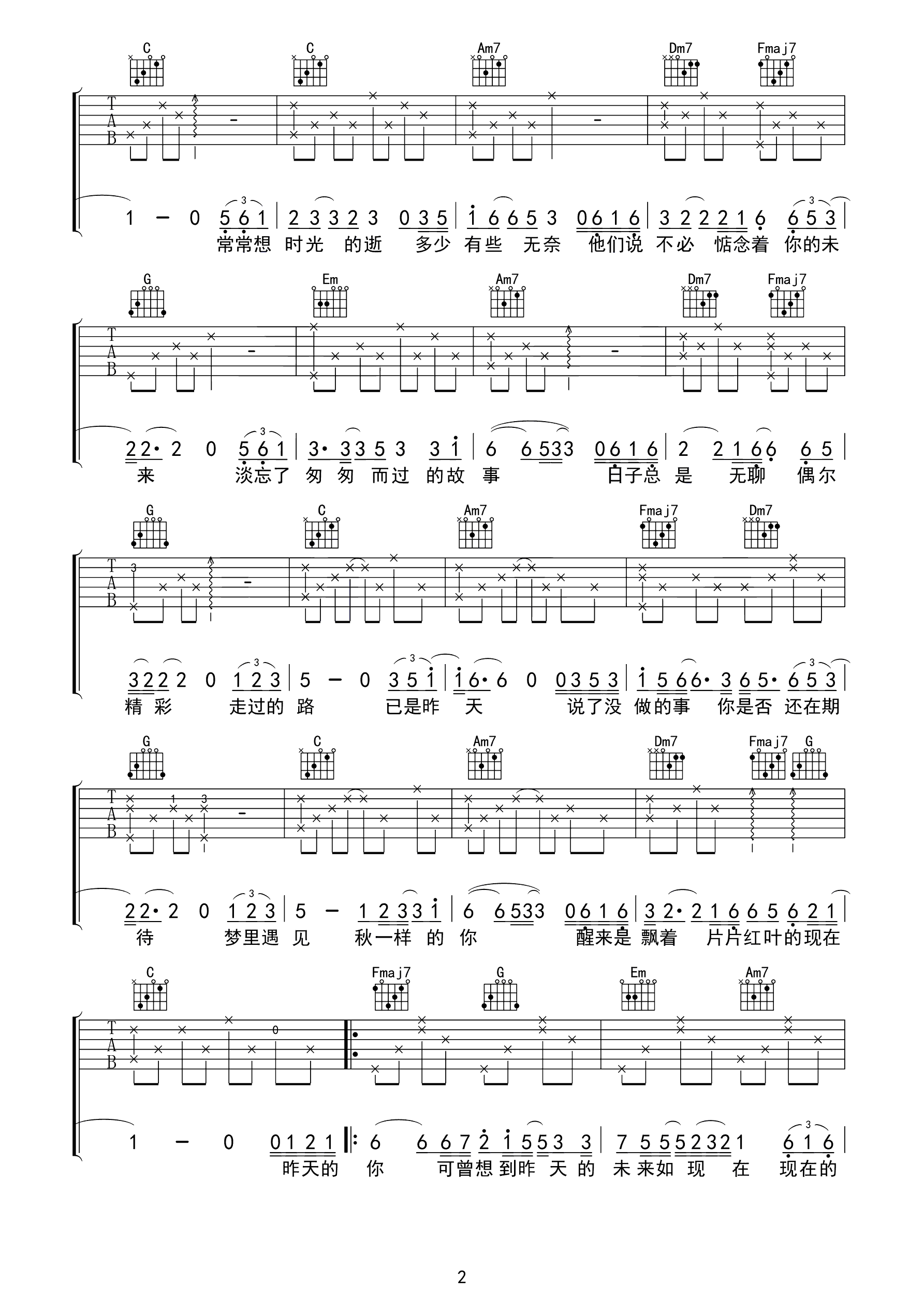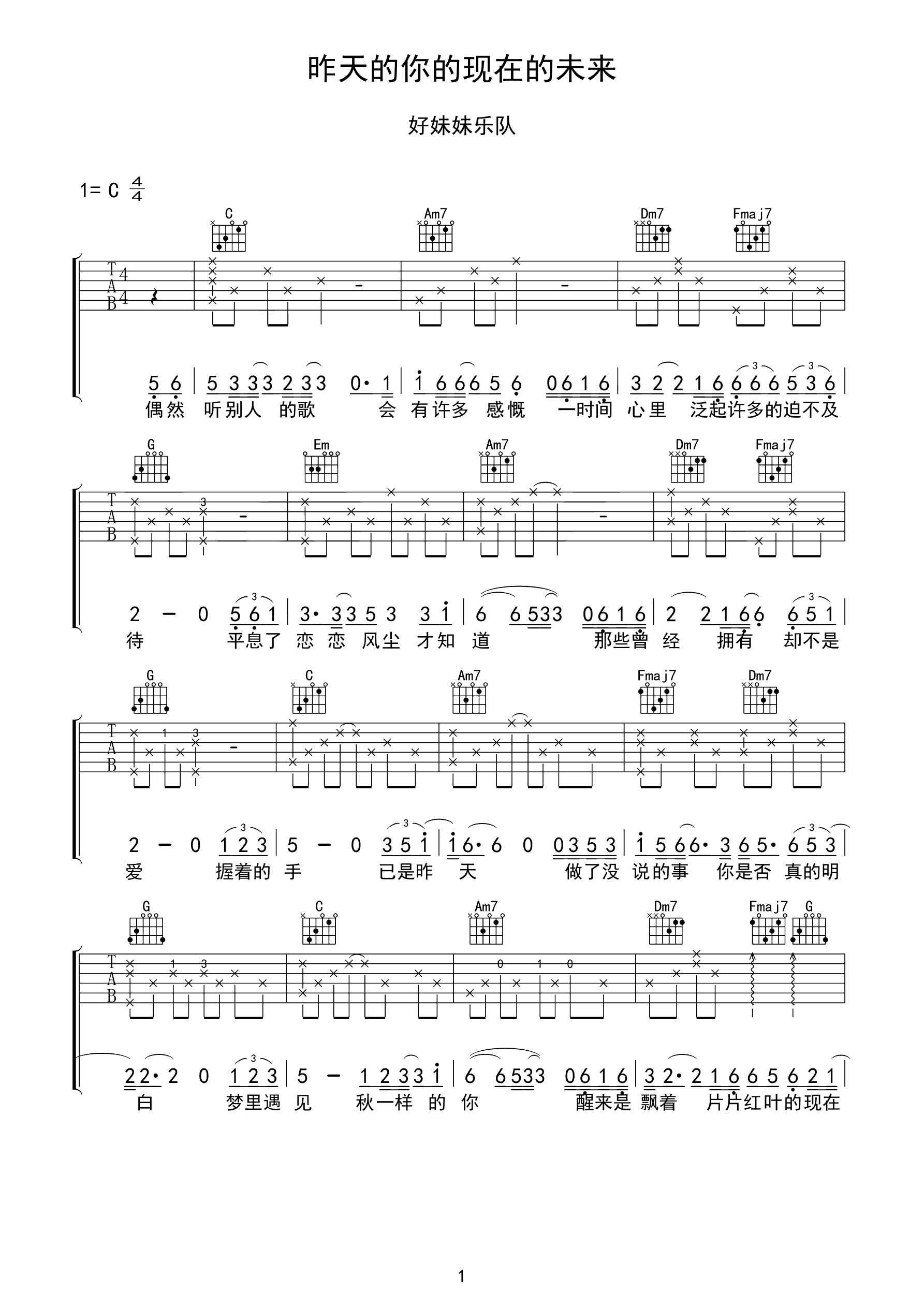 吉他谱 | 热门弹唱《昨天的你的现在的未来》