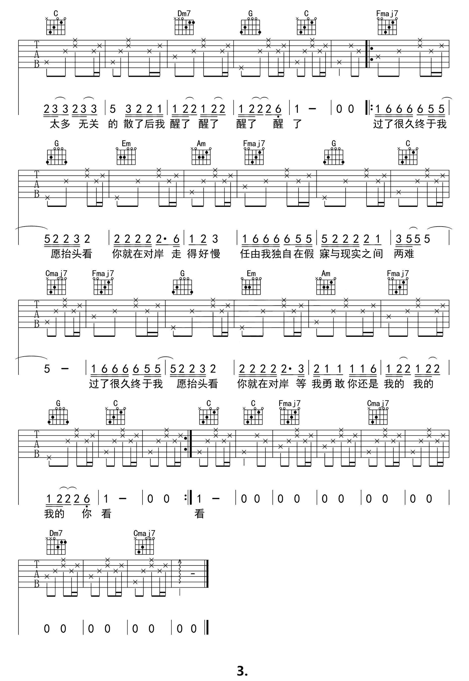 自由港 弹唱版 吉他谱