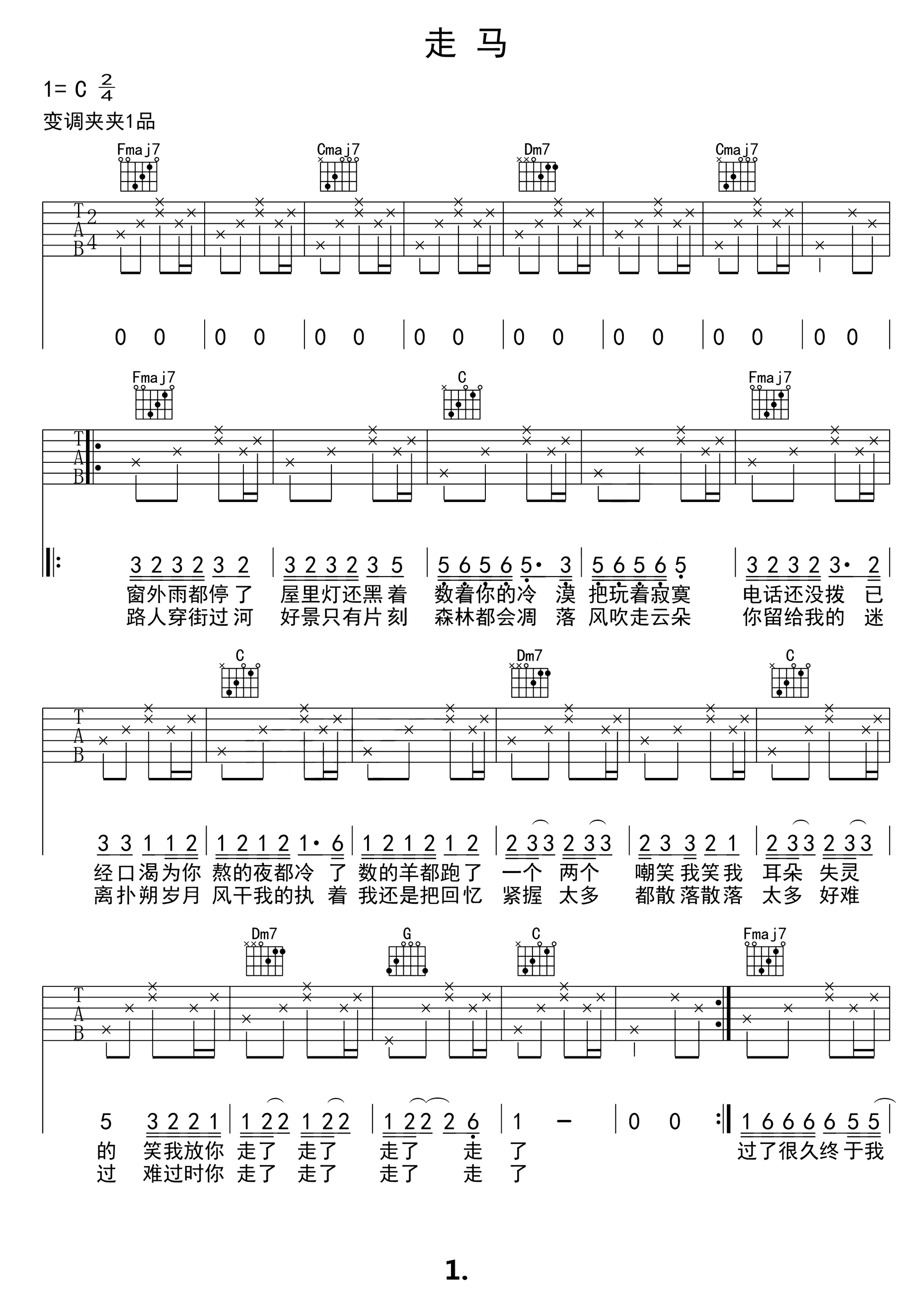 吉他谱 | 入门弹唱《走马》