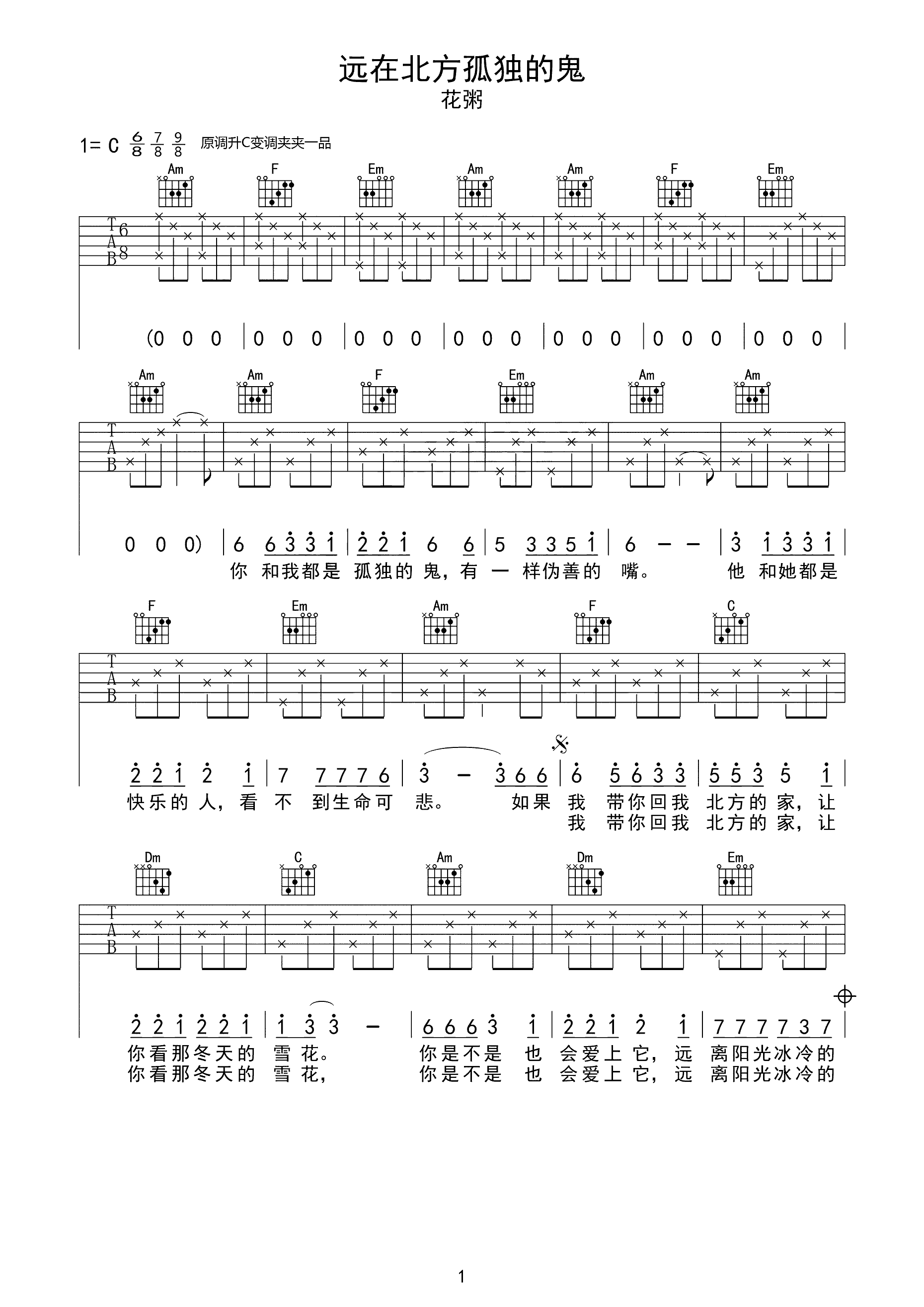 吉他谱 | 热门弹唱《远在北方孤独的鬼》