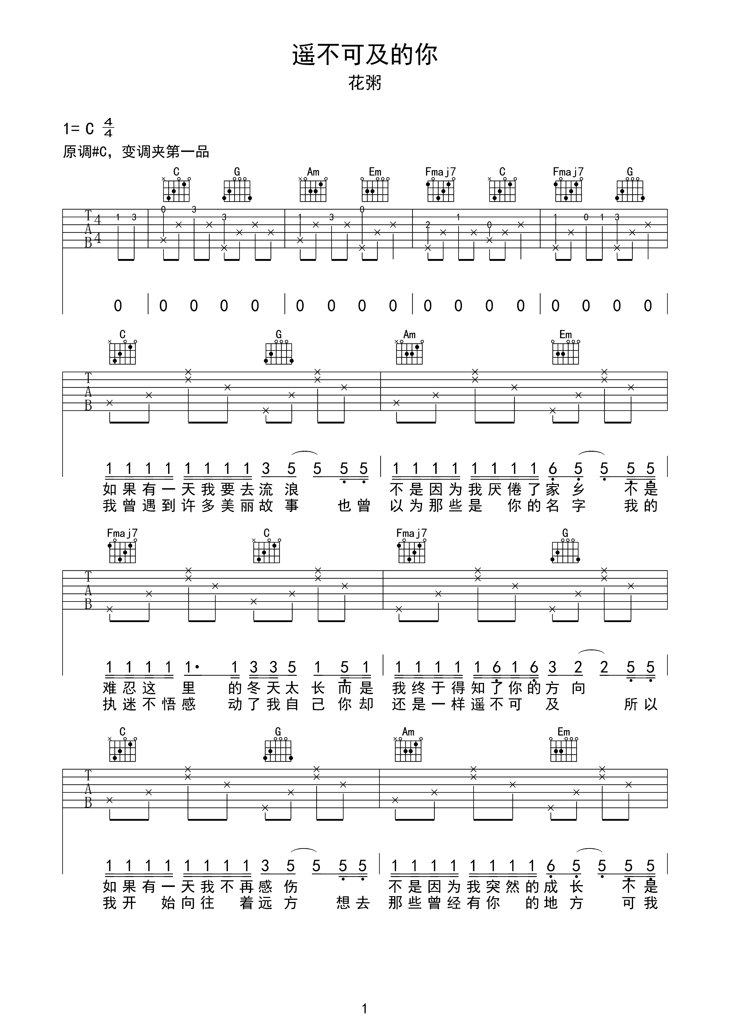 吉他谱 | 热门弹唱《遥不可及的你》