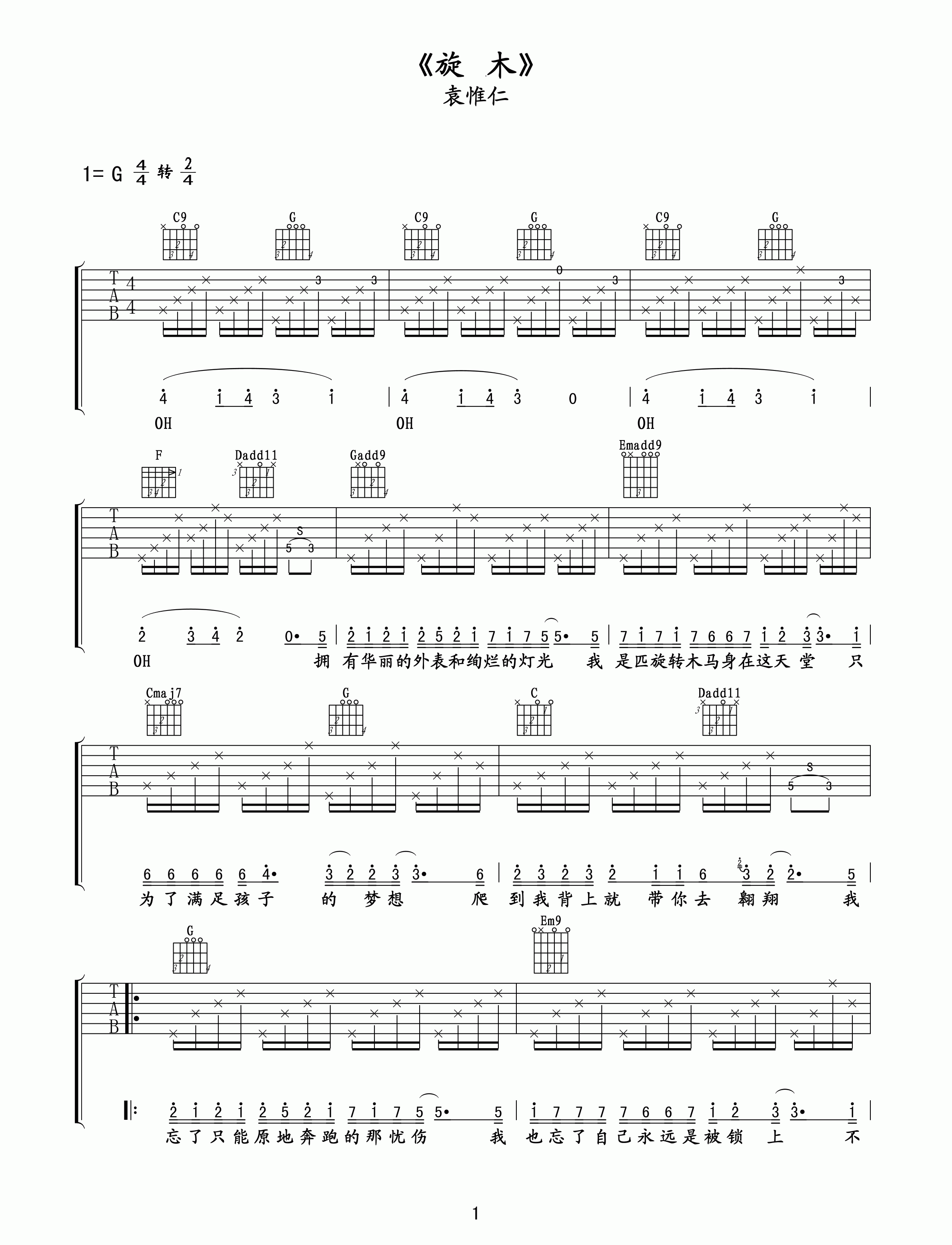 吉他谱 | 热门弹唱《旋木》