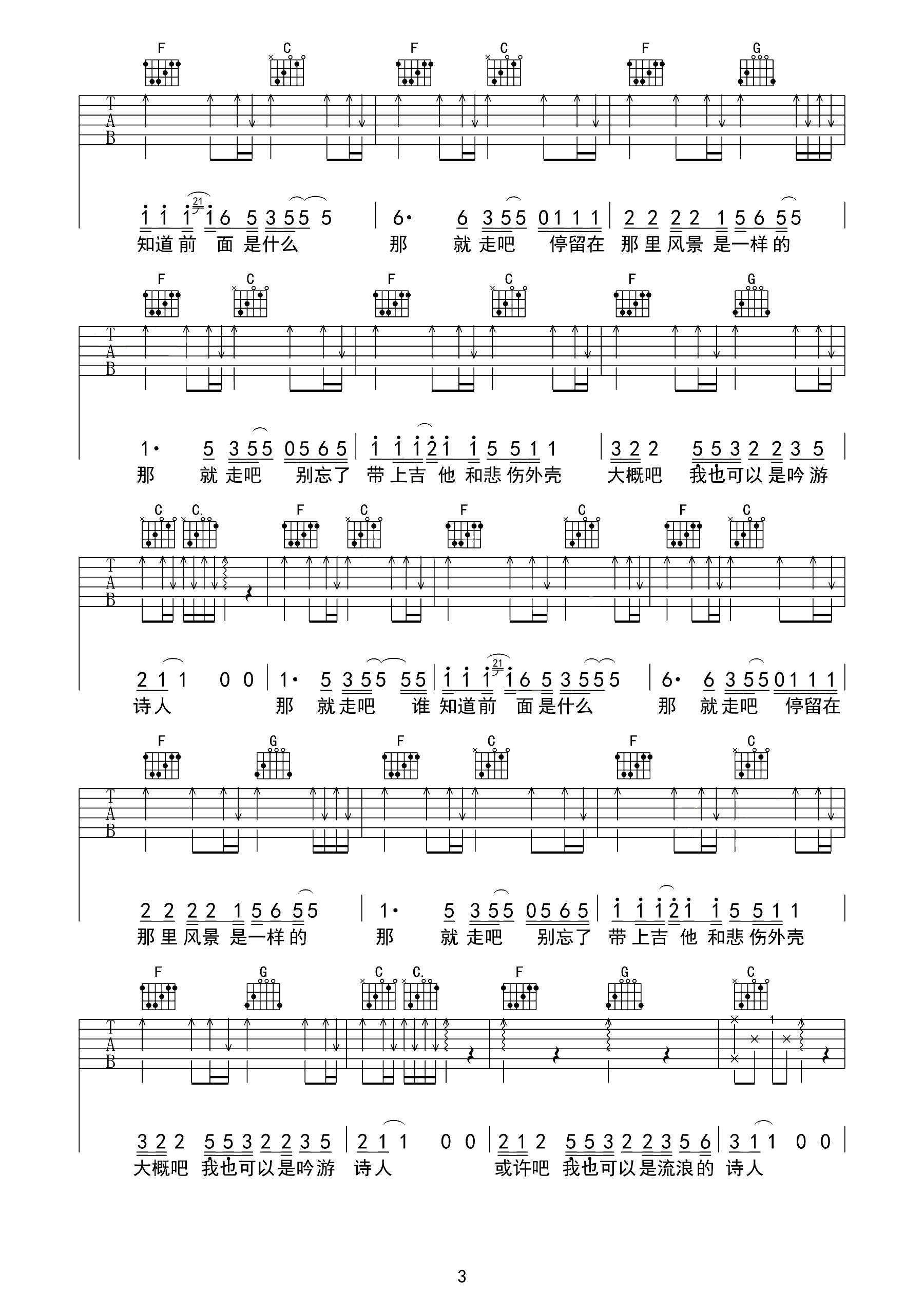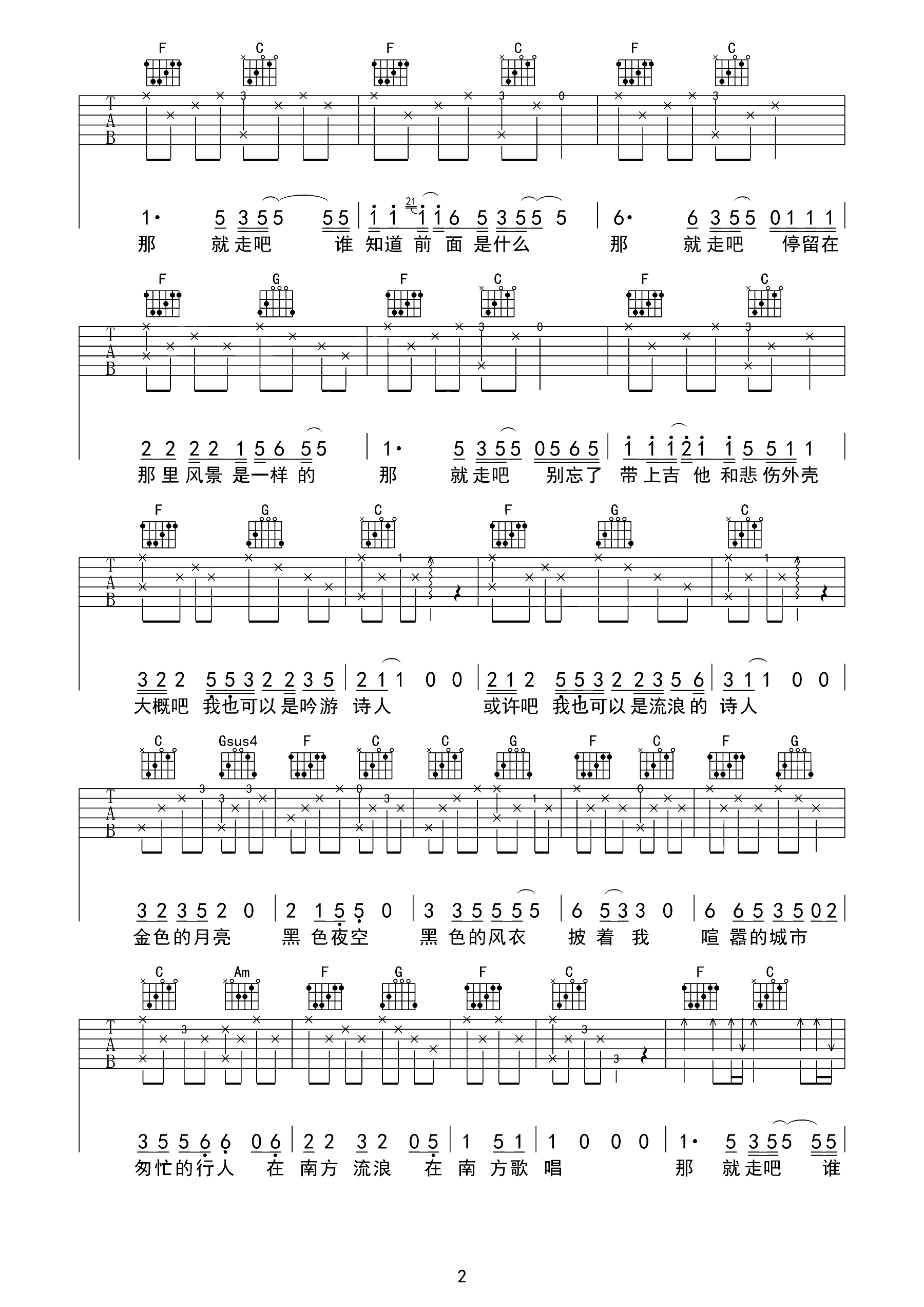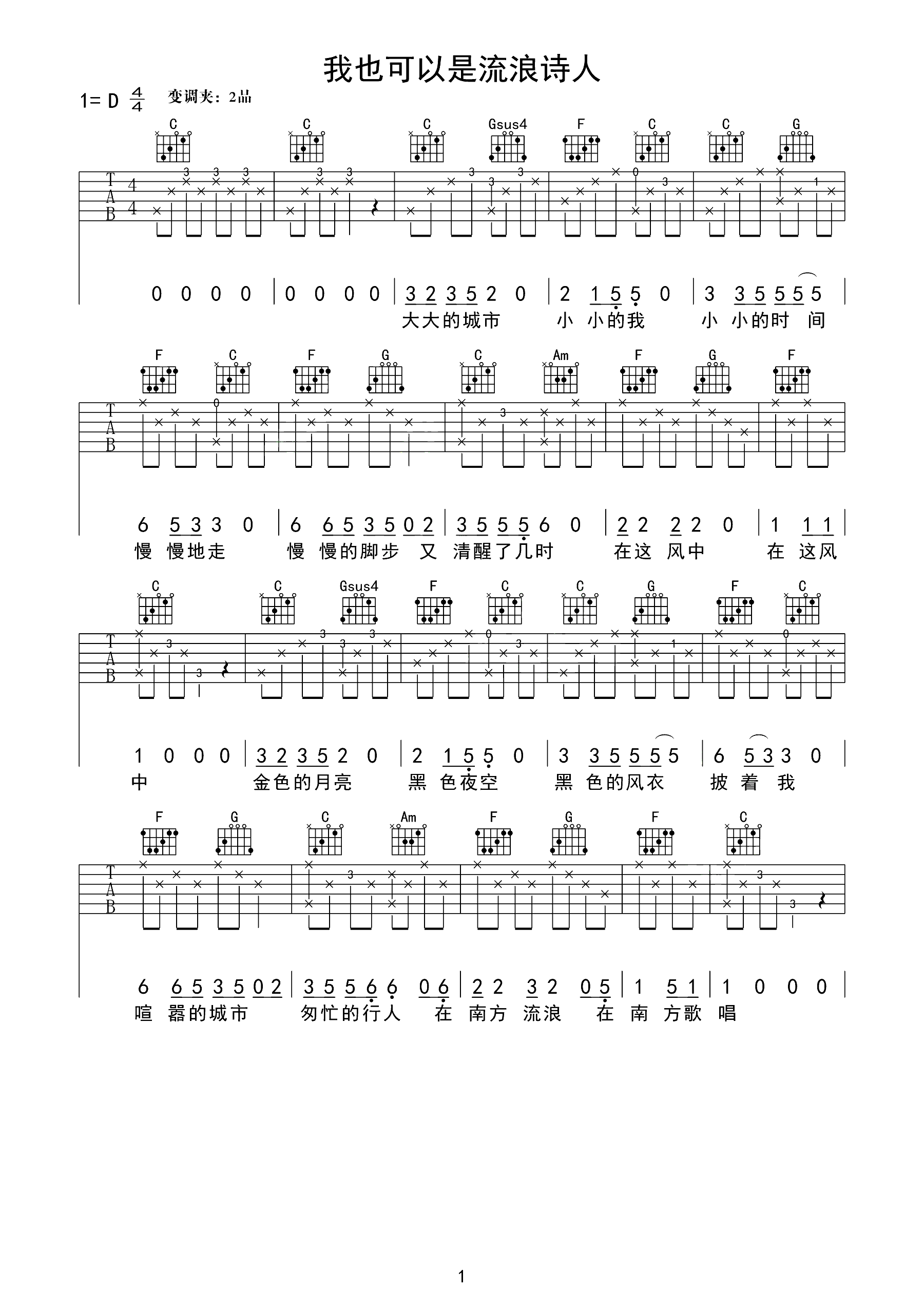 吉他谱 | 热门弹唱《我也可以是流浪诗人》