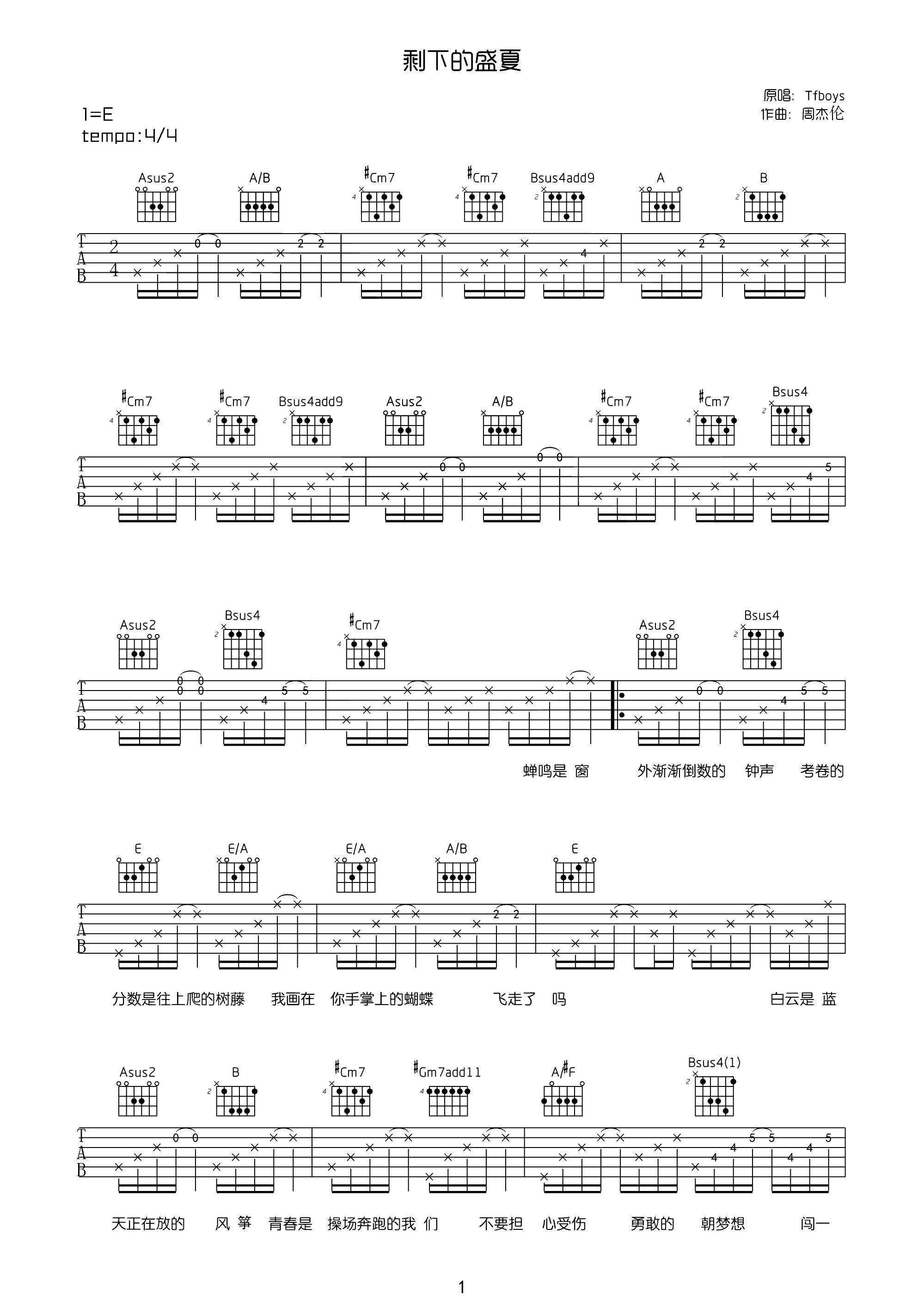 吉他谱 | 热门弹唱《剩下的盛夏》