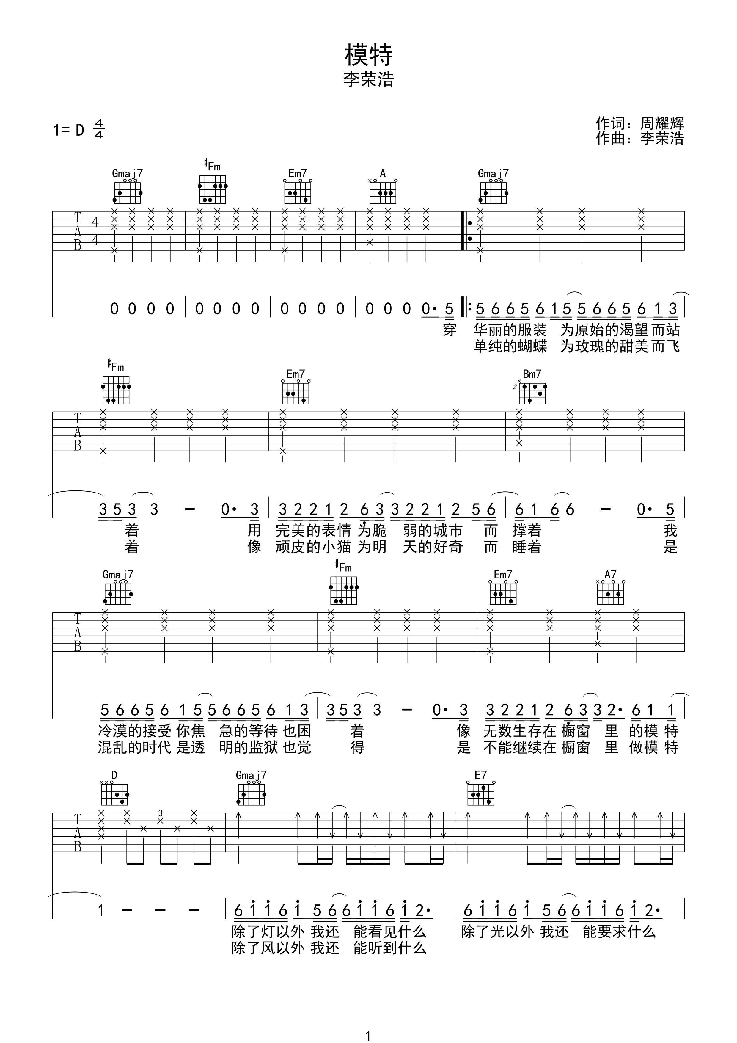 吉他谱 | 热门弹唱《模特》
