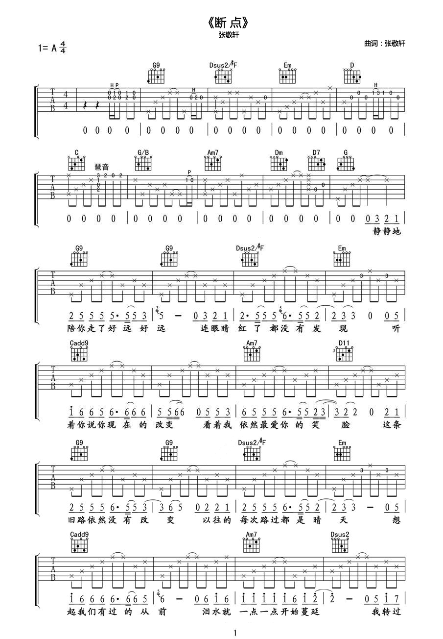 吉他谱 | 热门弹唱《断点》