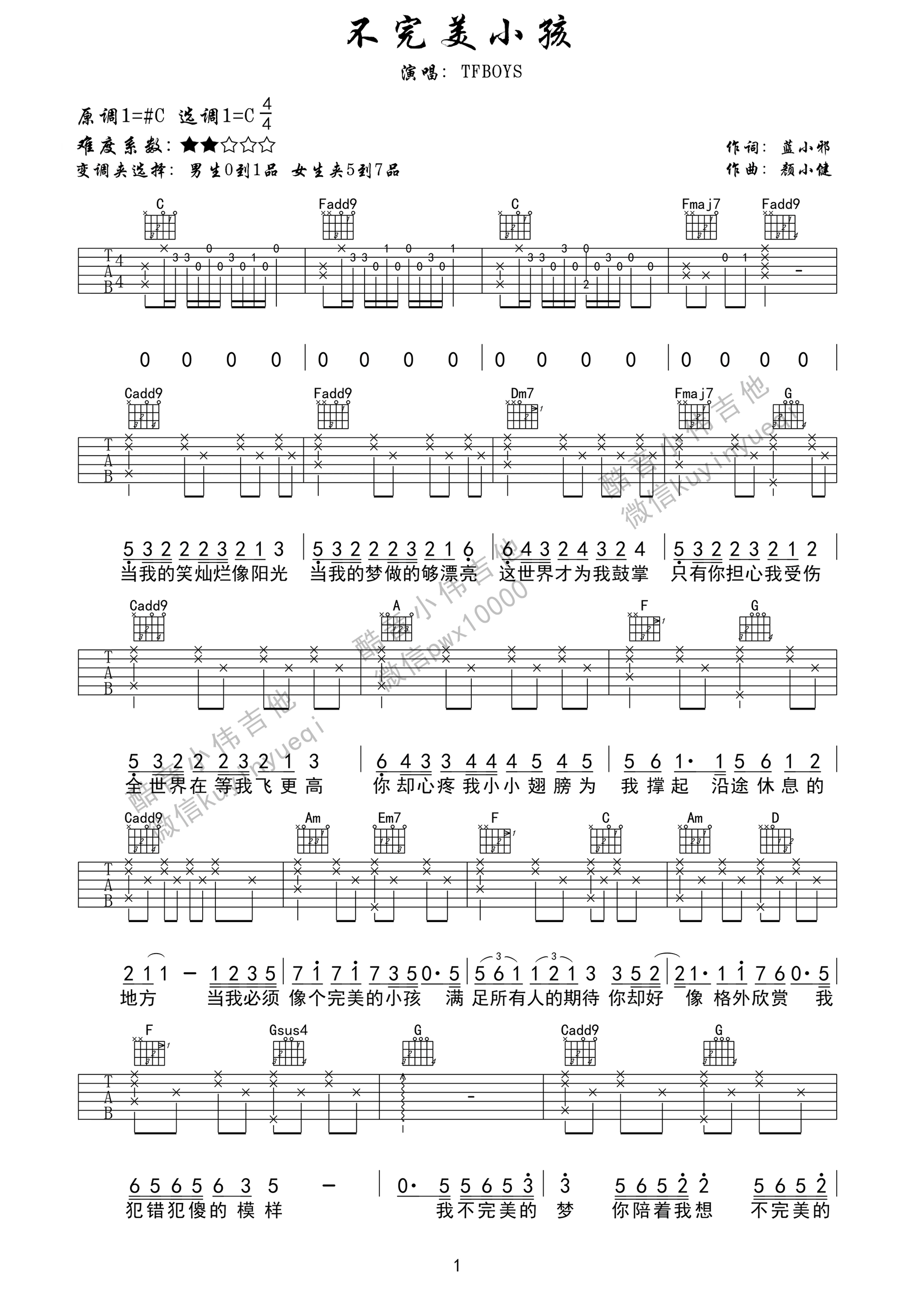 吉他谱 | 热门弹唱《不完美小孩》