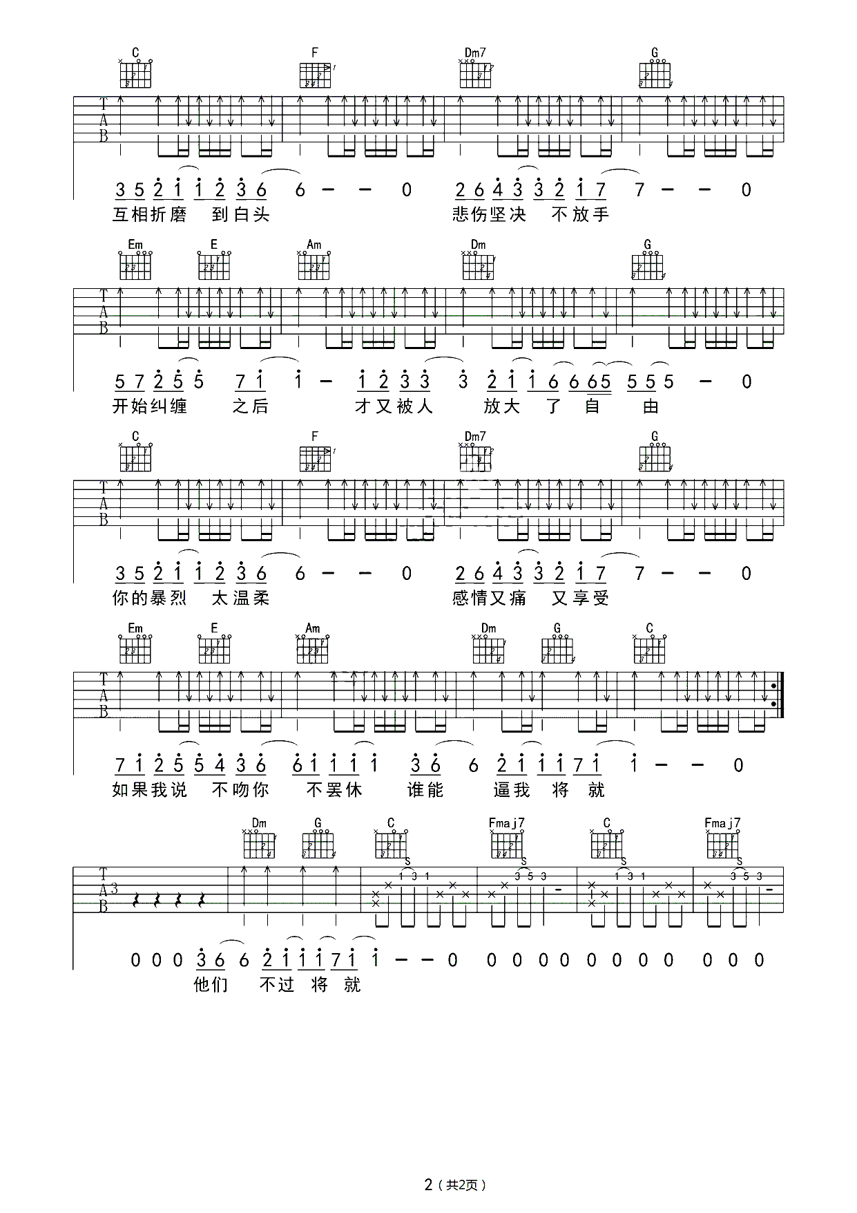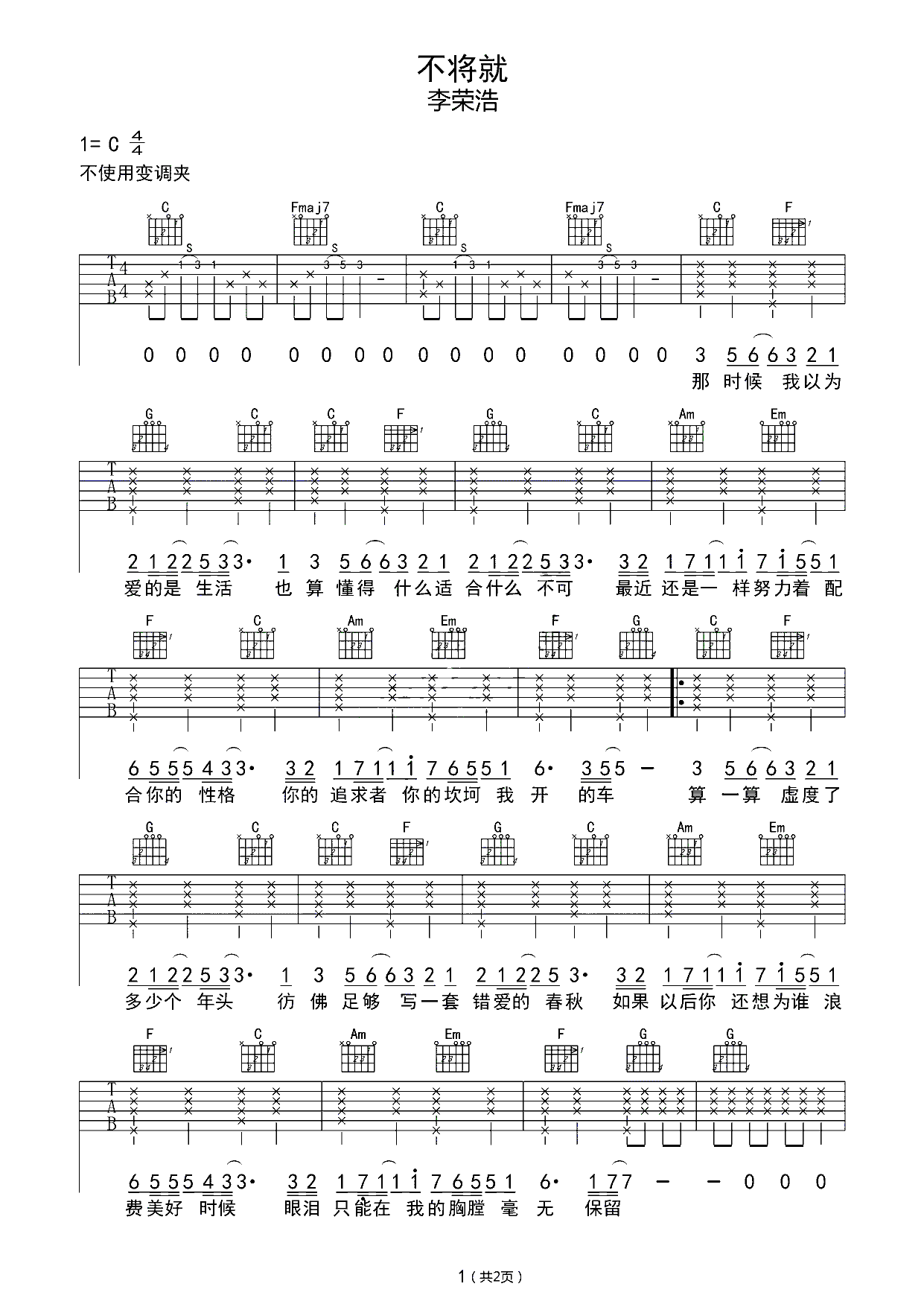 吉他谱 | 热门弹唱《不将就》