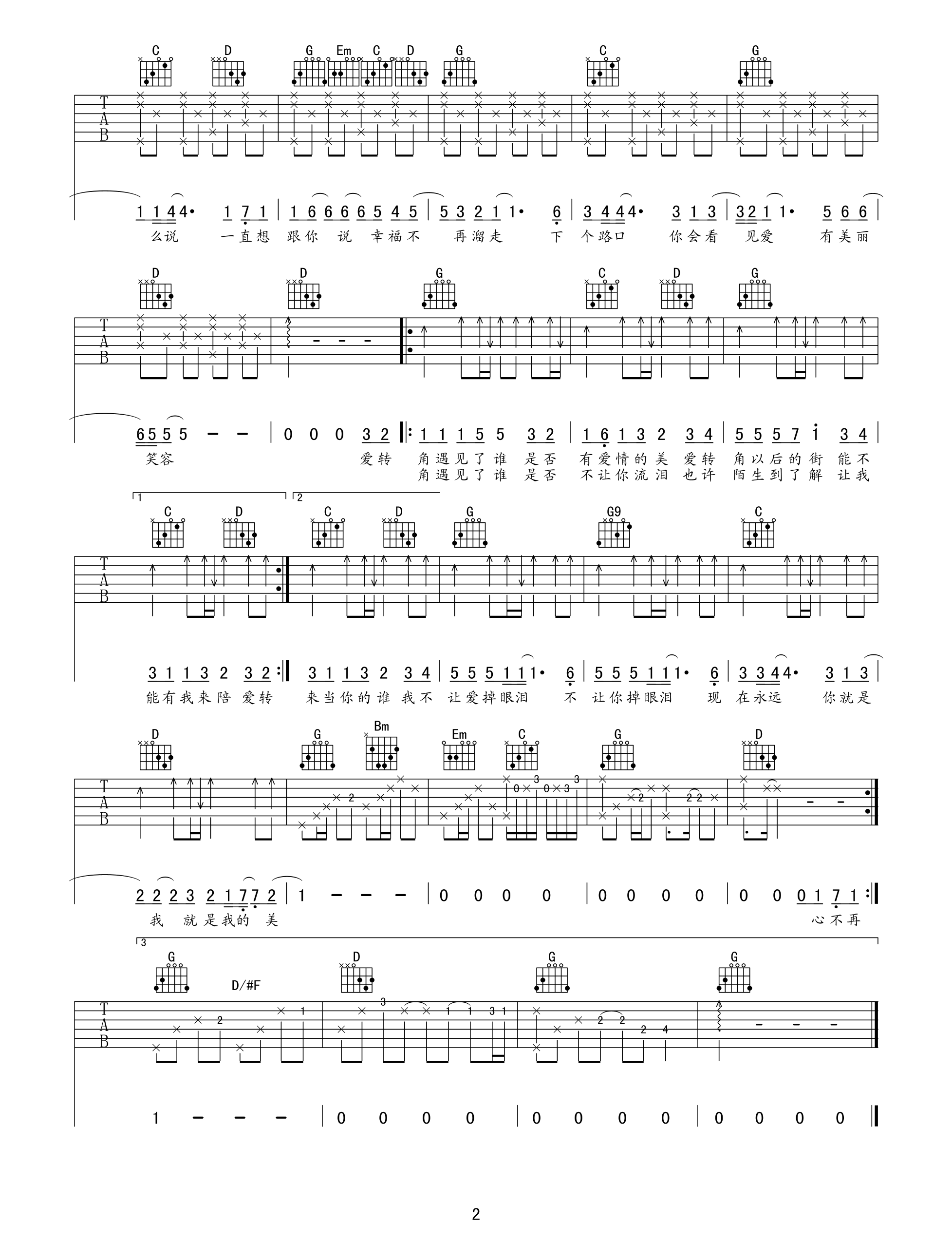 最天使吉他谱_曾轶可_C调原版_弹唱六线