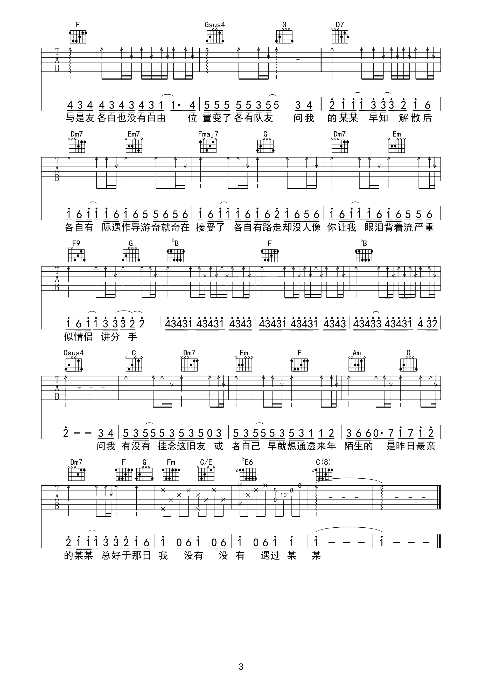 等爱走了以后吉他谱