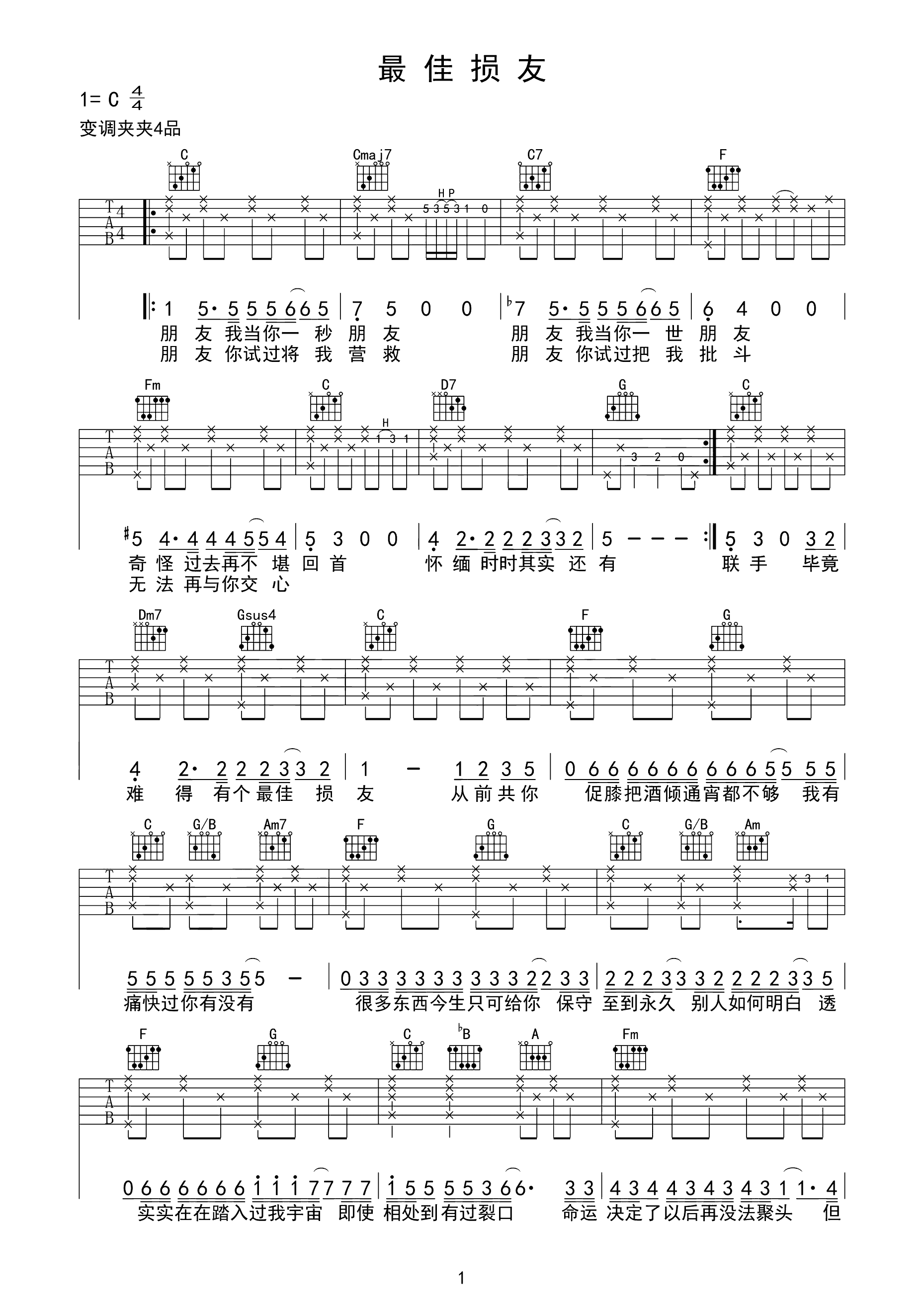 吉他谱 | 热门弹唱《最佳损友》