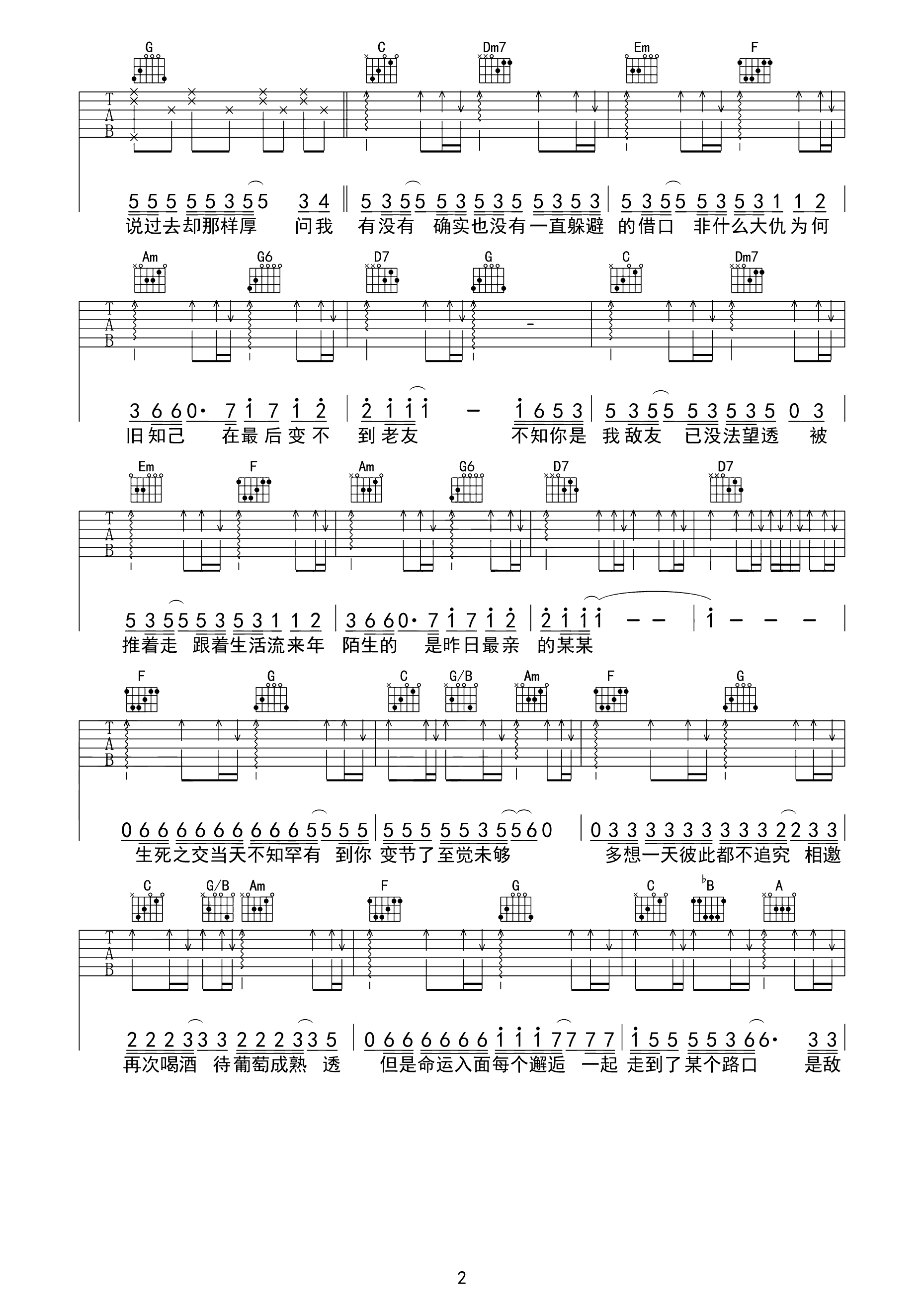 妓和不如吉他谱 隔壁老樊 弹唱六线谱