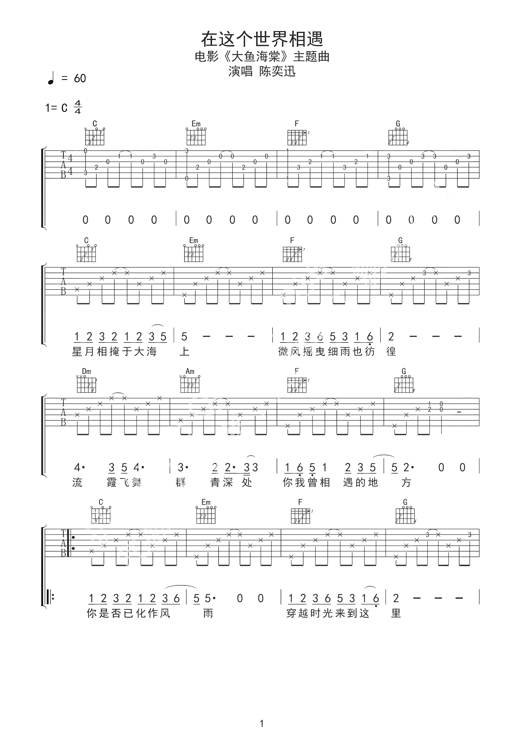 吉他谱 | 热门弹唱《在这个世界相遇》