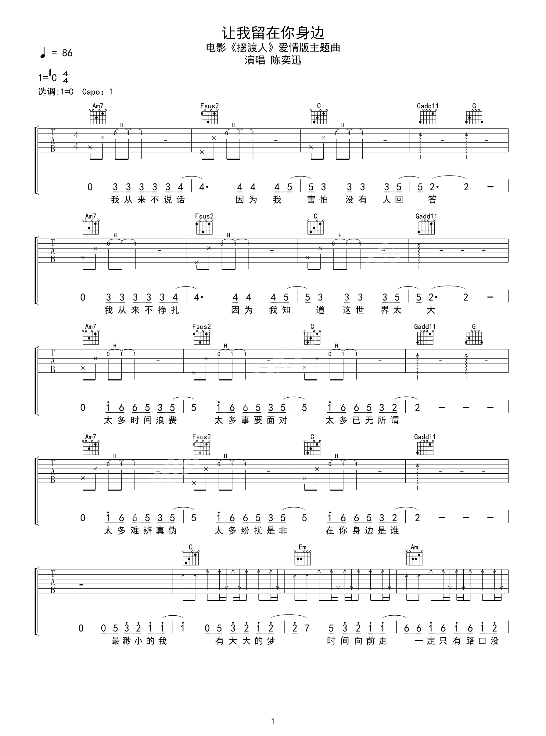 吉他谱 | 热门弹唱《让我留在你身边》