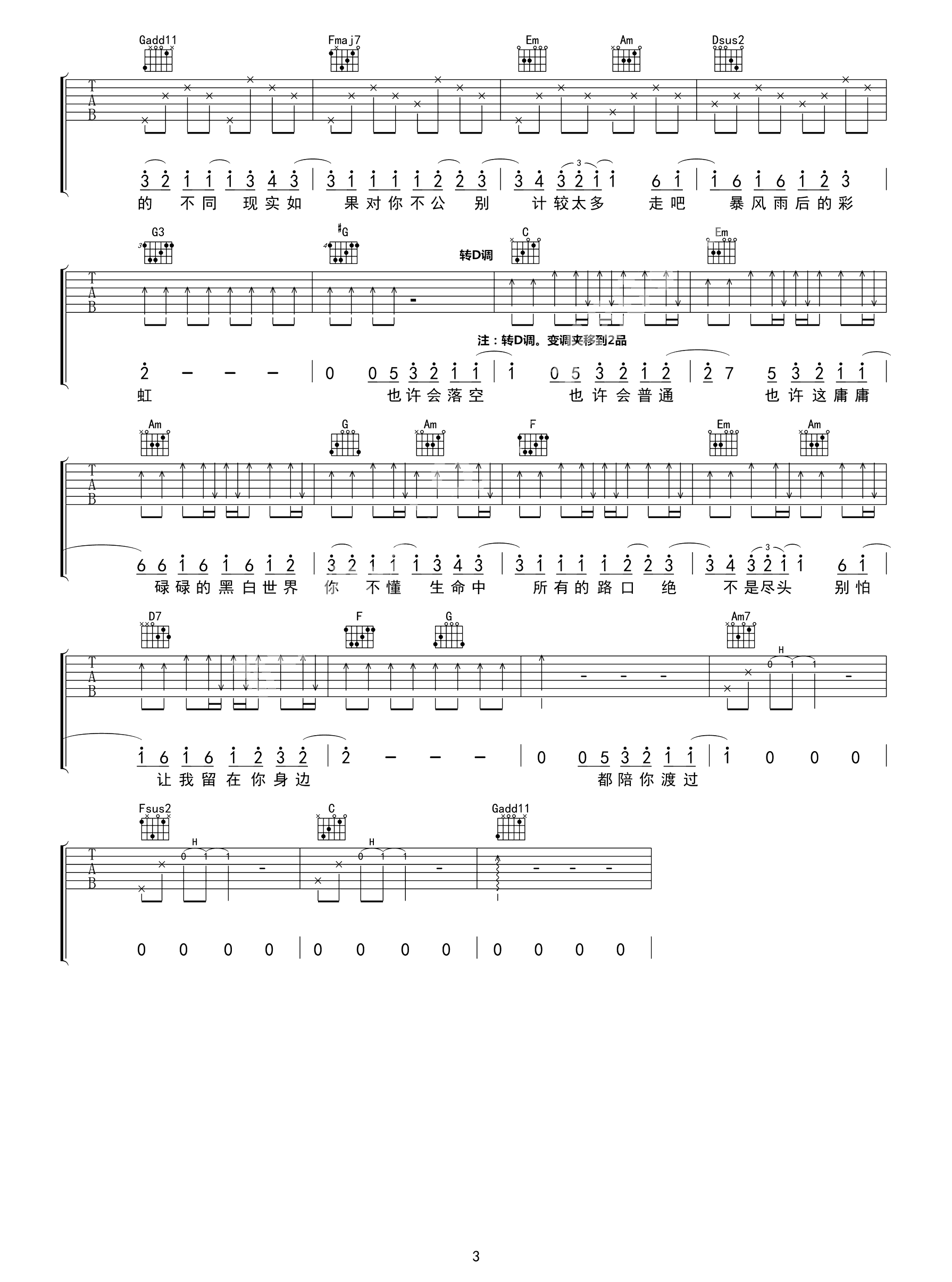 今天夜里总下雨 吉他类 流行吉他谱