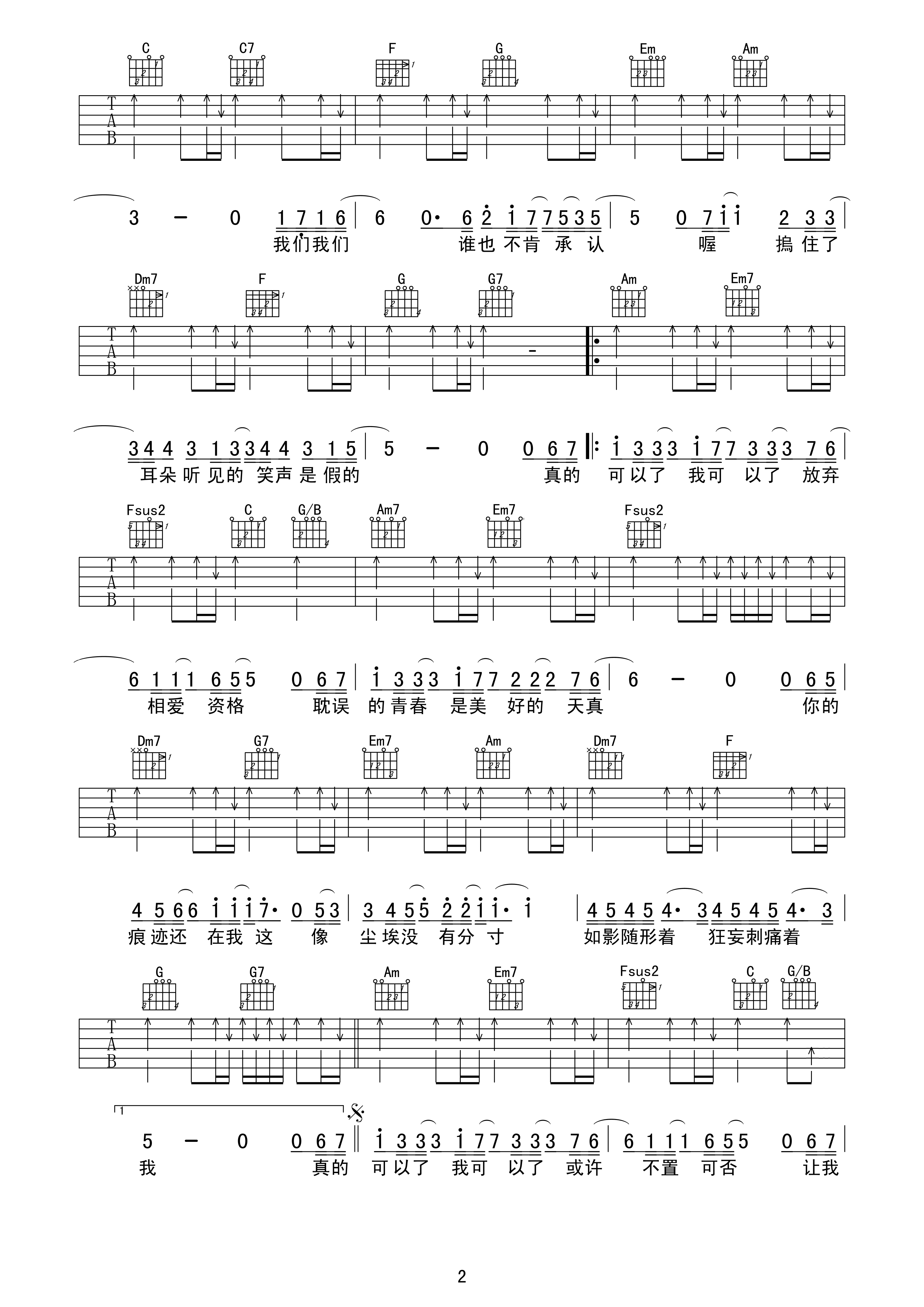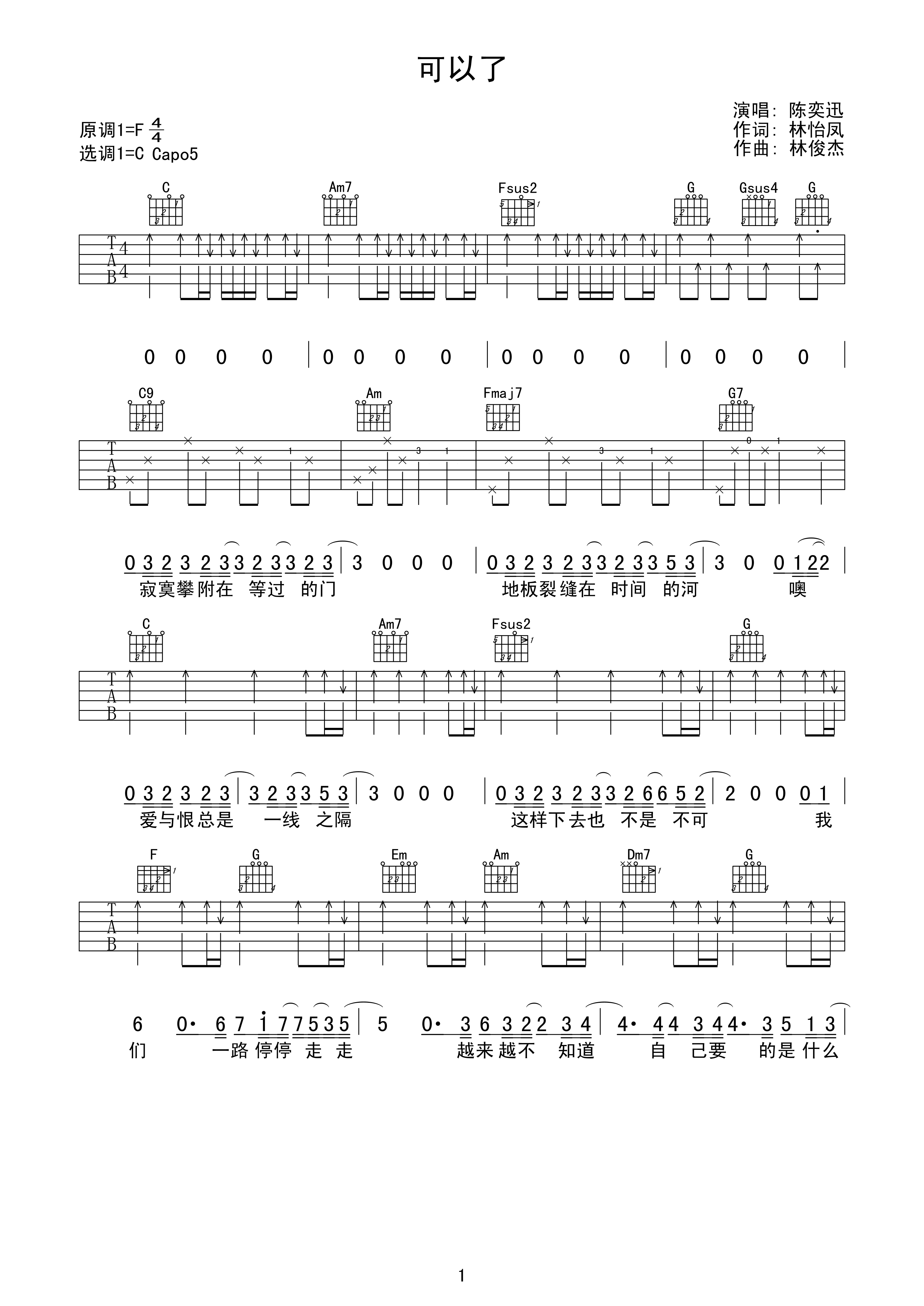 吉他谱 | 热门弹唱《可以了》