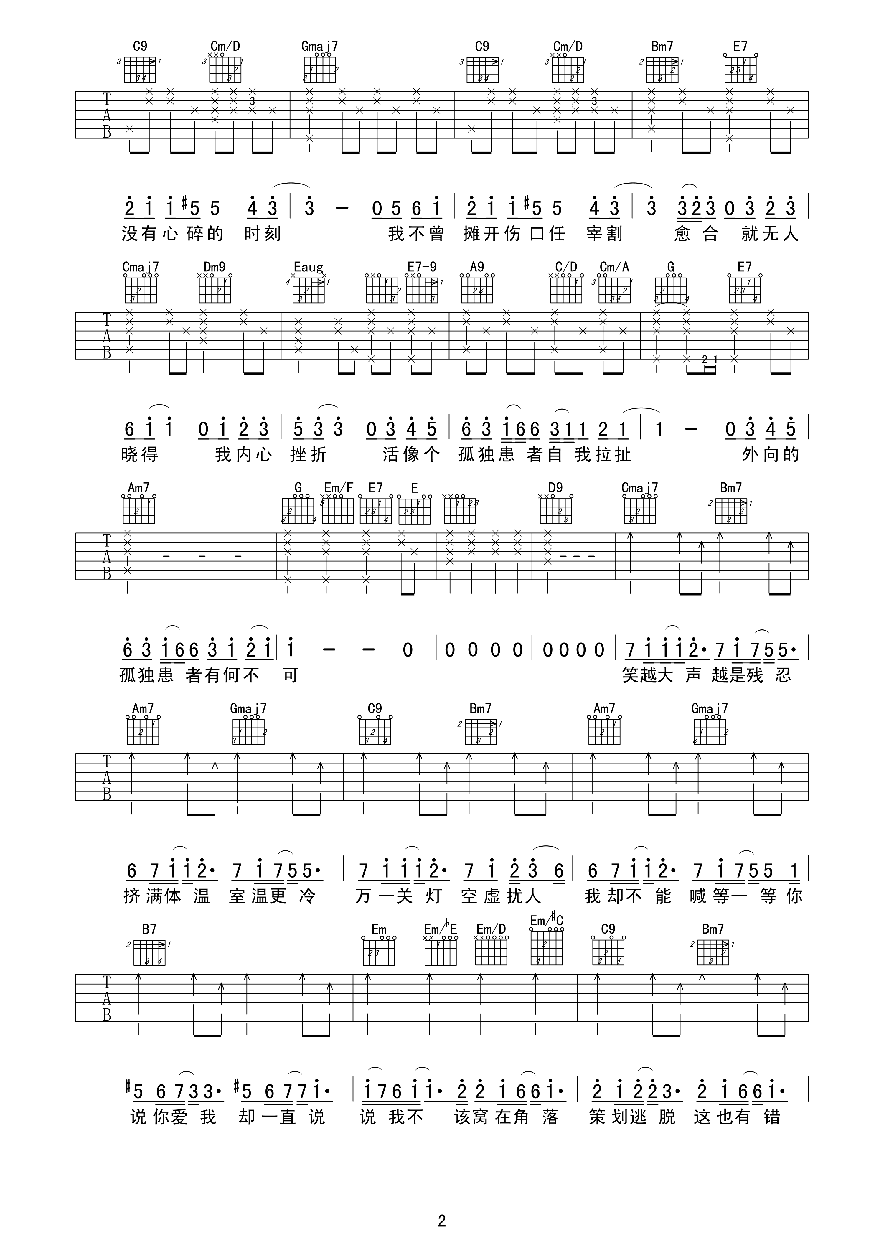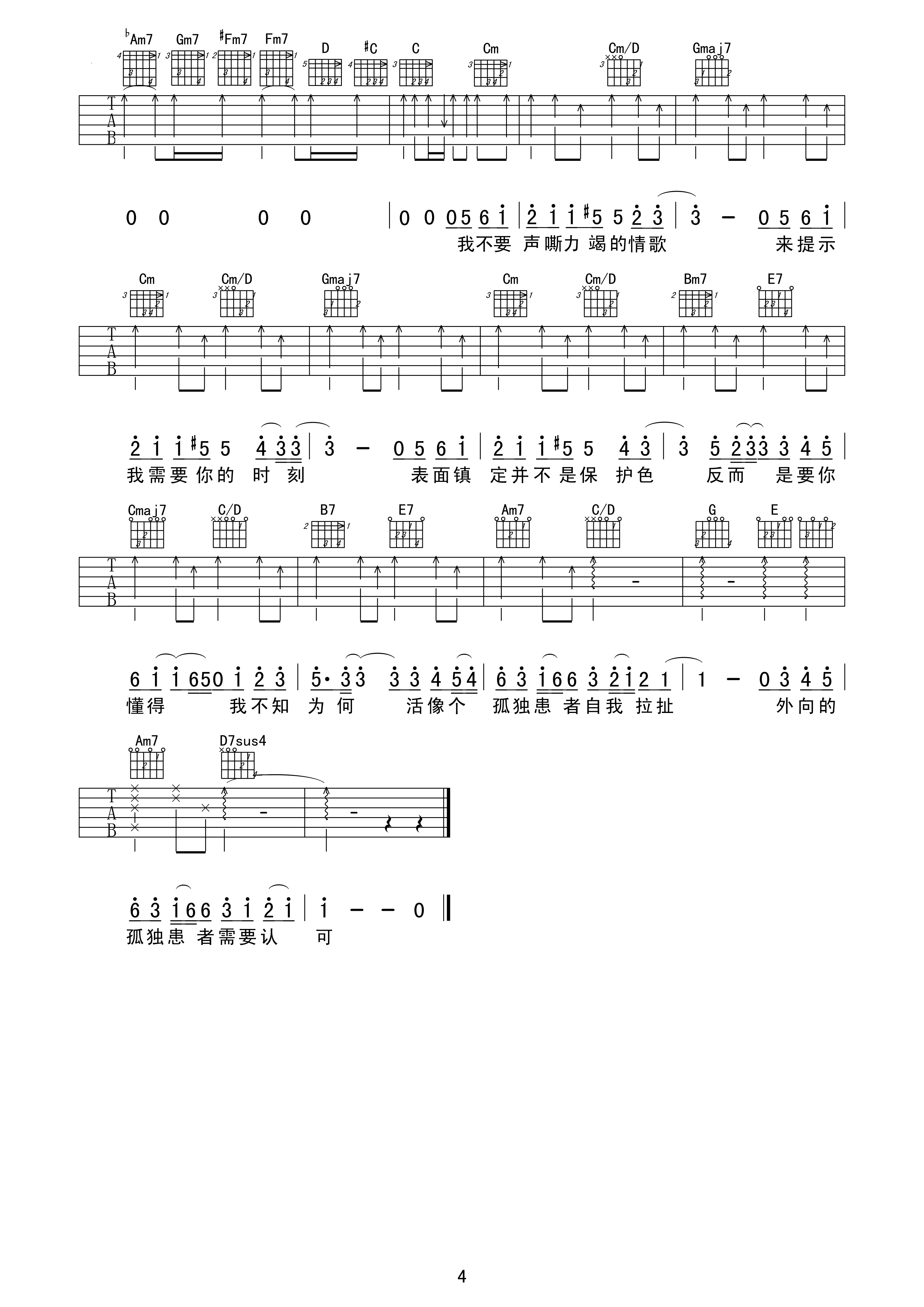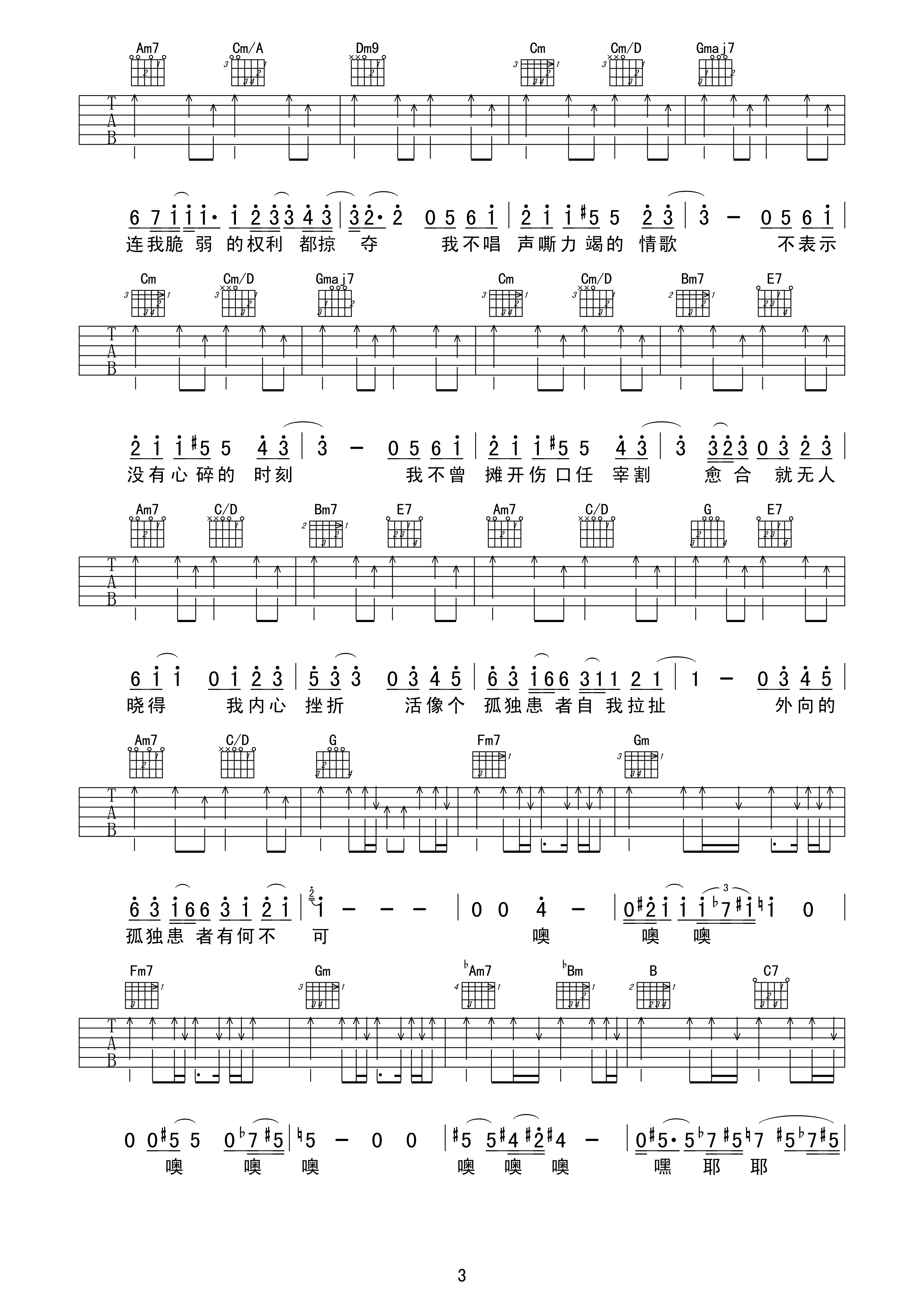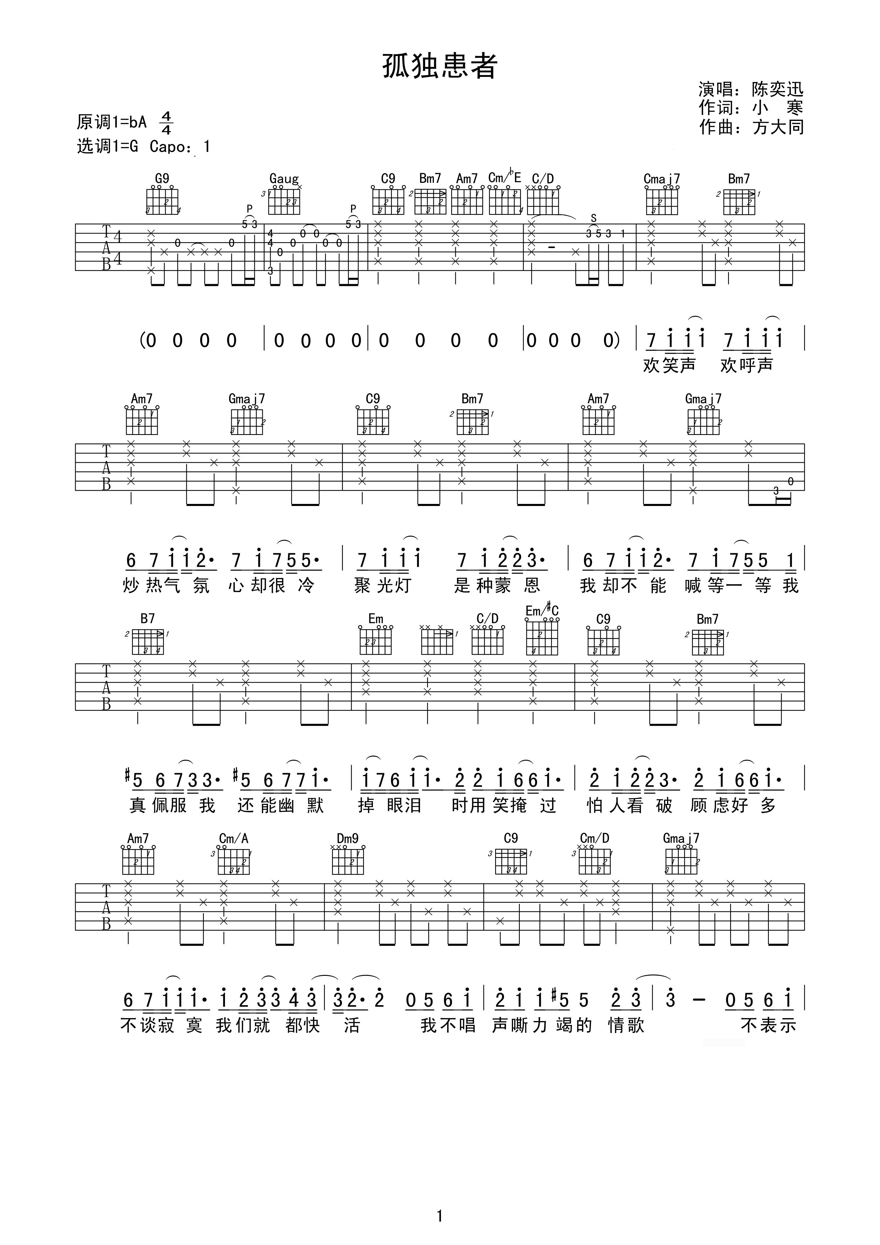 吉他谱 | 热门弹唱《孤独患者》