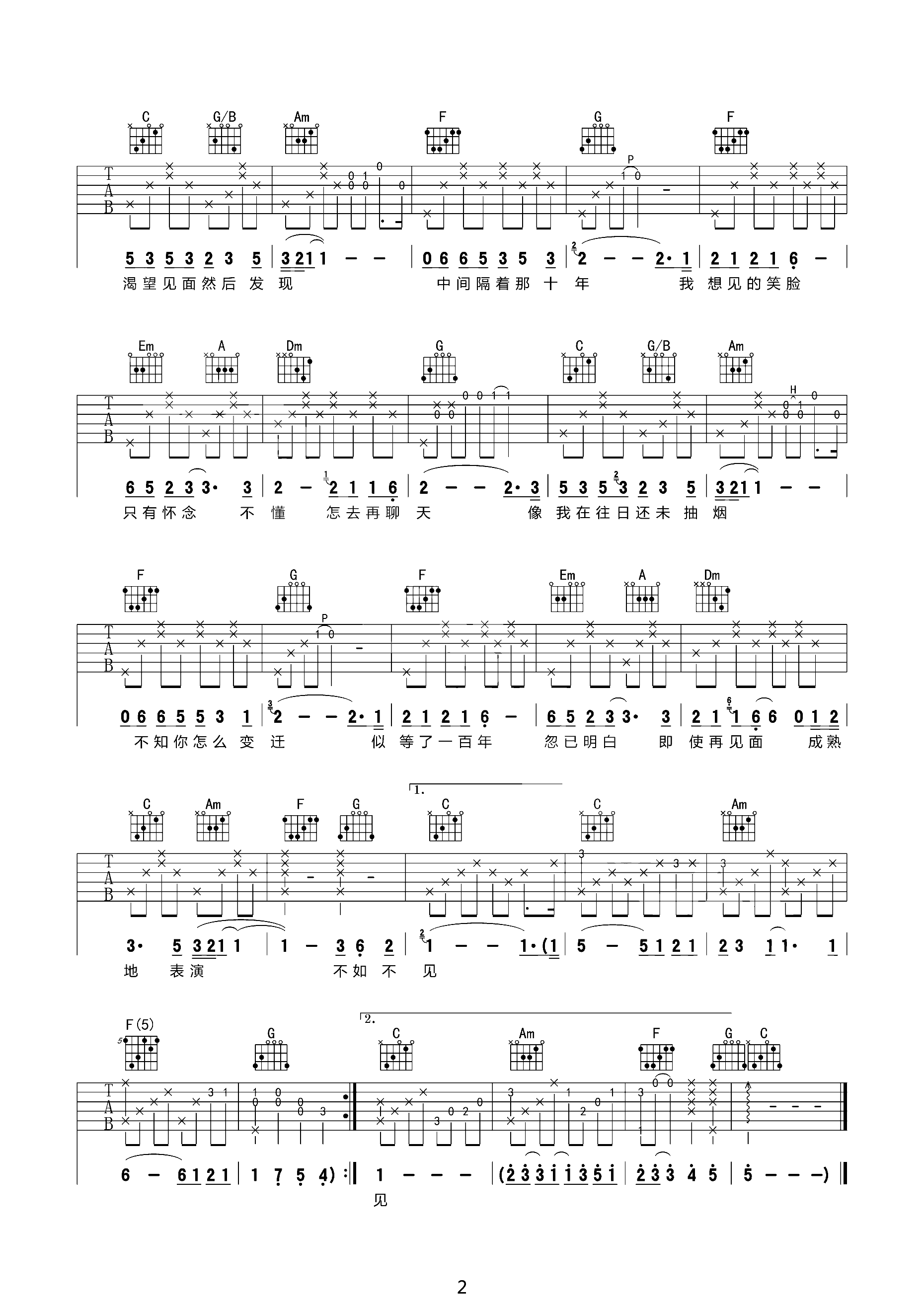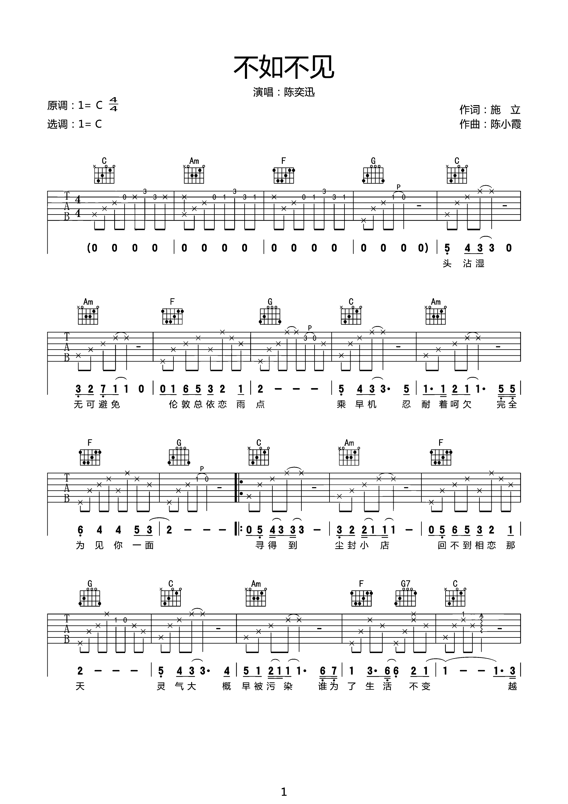 一个吉他谱_陈壹千_G调_弹唱六线谱_高