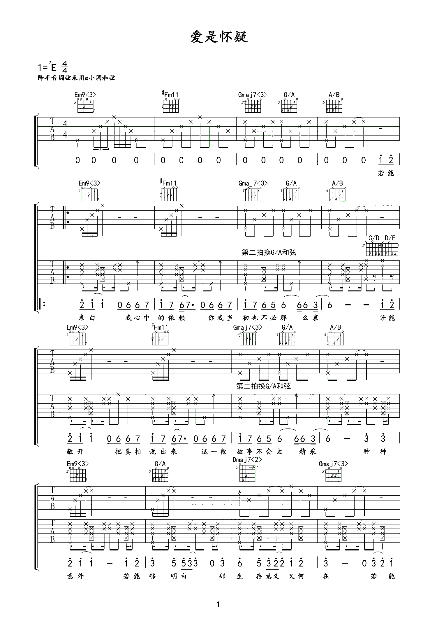 与我无关吉他谱_阿冗_C调版本_弹唱六线