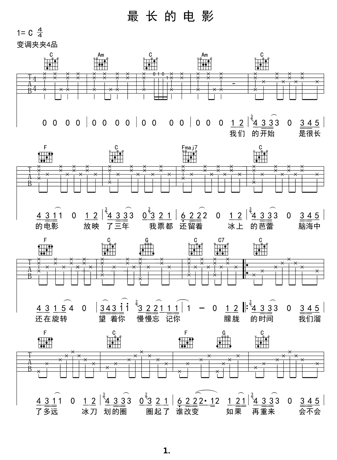 吉他谱 | 热门弹唱《最长的电影》