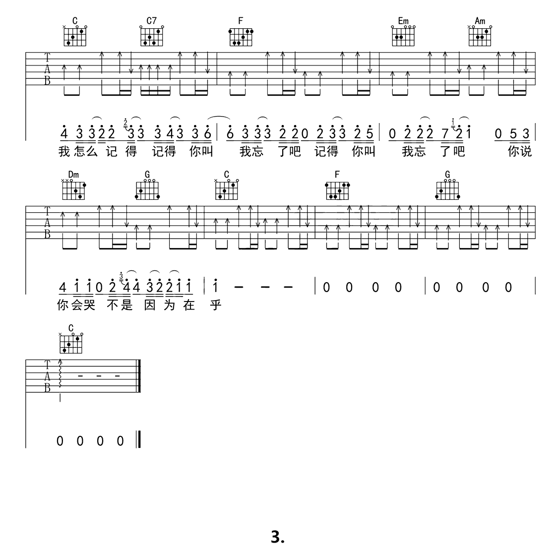 阿肆《喜欢》吉他谱_C调_和弦弹唱谱