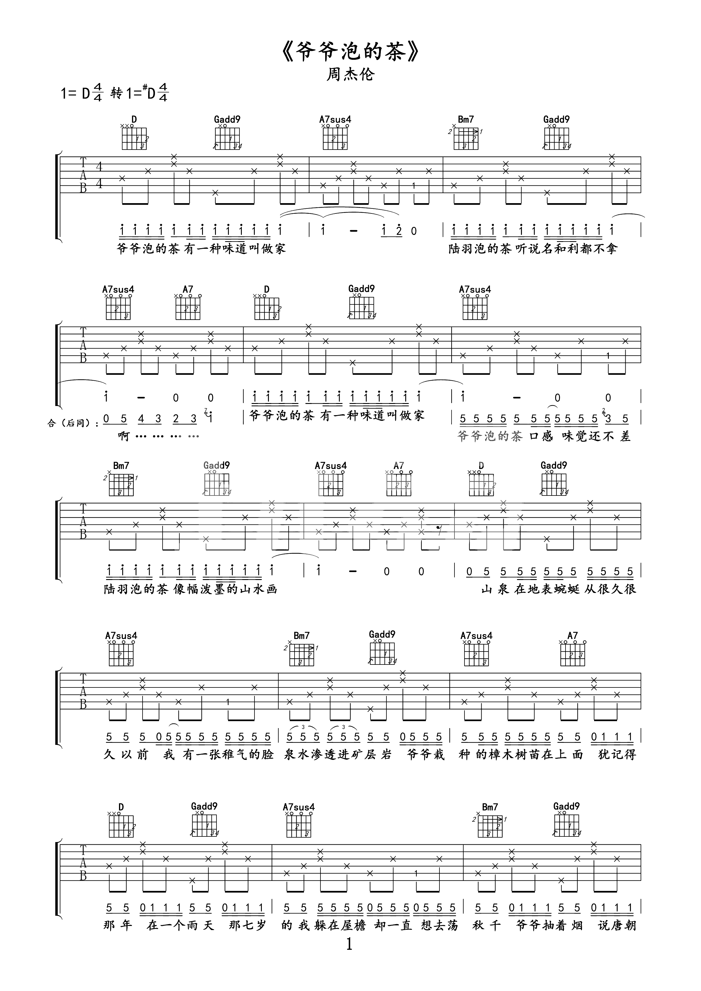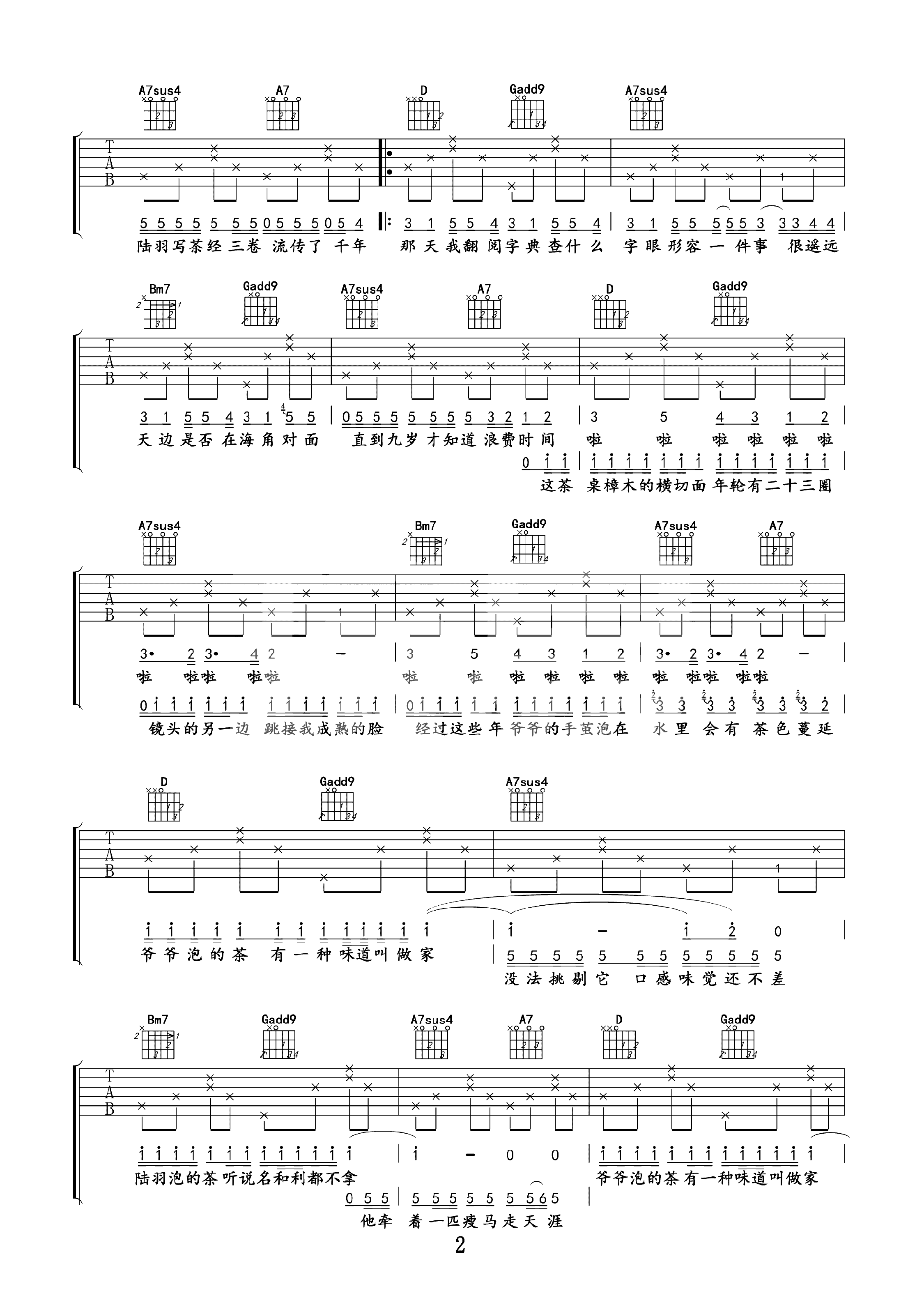 吉他谱 | 热门弹唱《爷爷泡的茶》