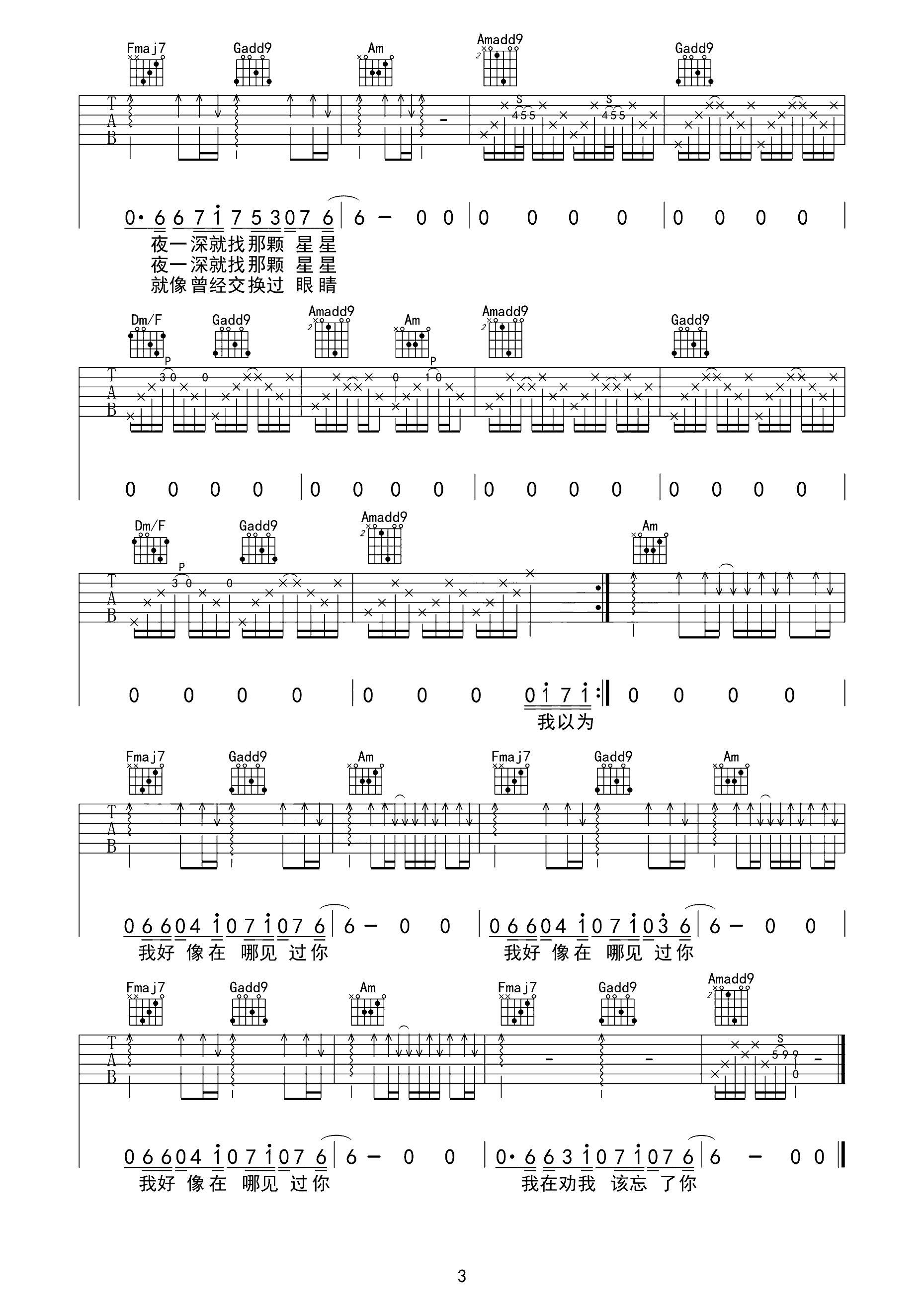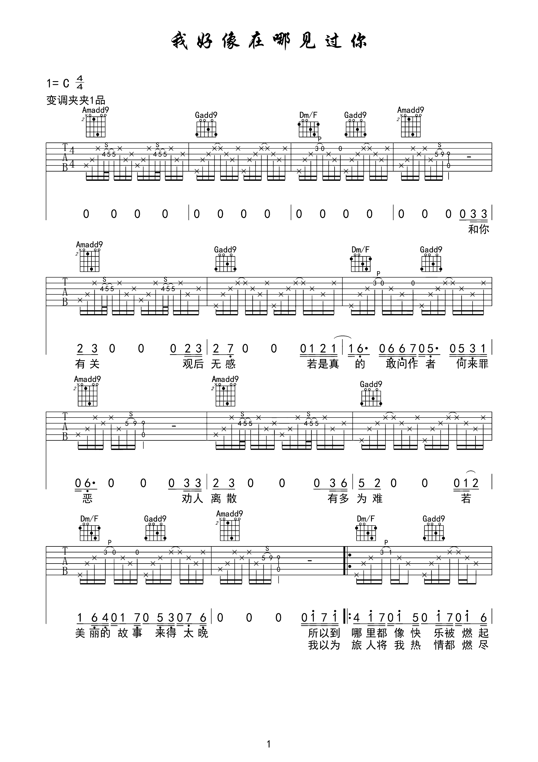 吉他谱 | 热门弹唱《我好像在哪见过你》